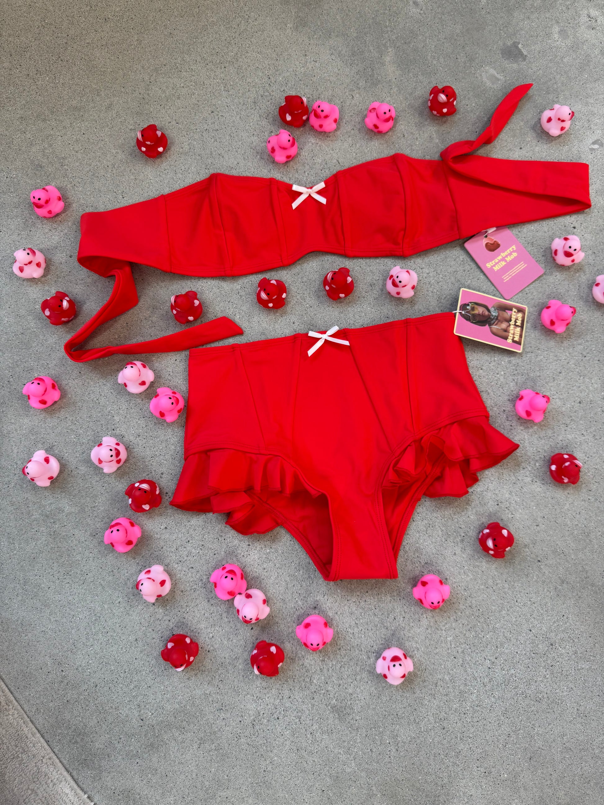 Turn up the red-iance in the Fitzgerald bikini bottom! This vintage-inspired, high-waisted bottom brings a blend of classic charm and comfort, with the most full coverage of any in our collection. The playful ruffle edge and dainty white bow detail add a flirty twist to this modest, secure fit. Feel confident and sweetly stylish all summer long in this adorable, retro-inspired essential. Perfect for sun-soaked days or a splash of timeless style by the pool!