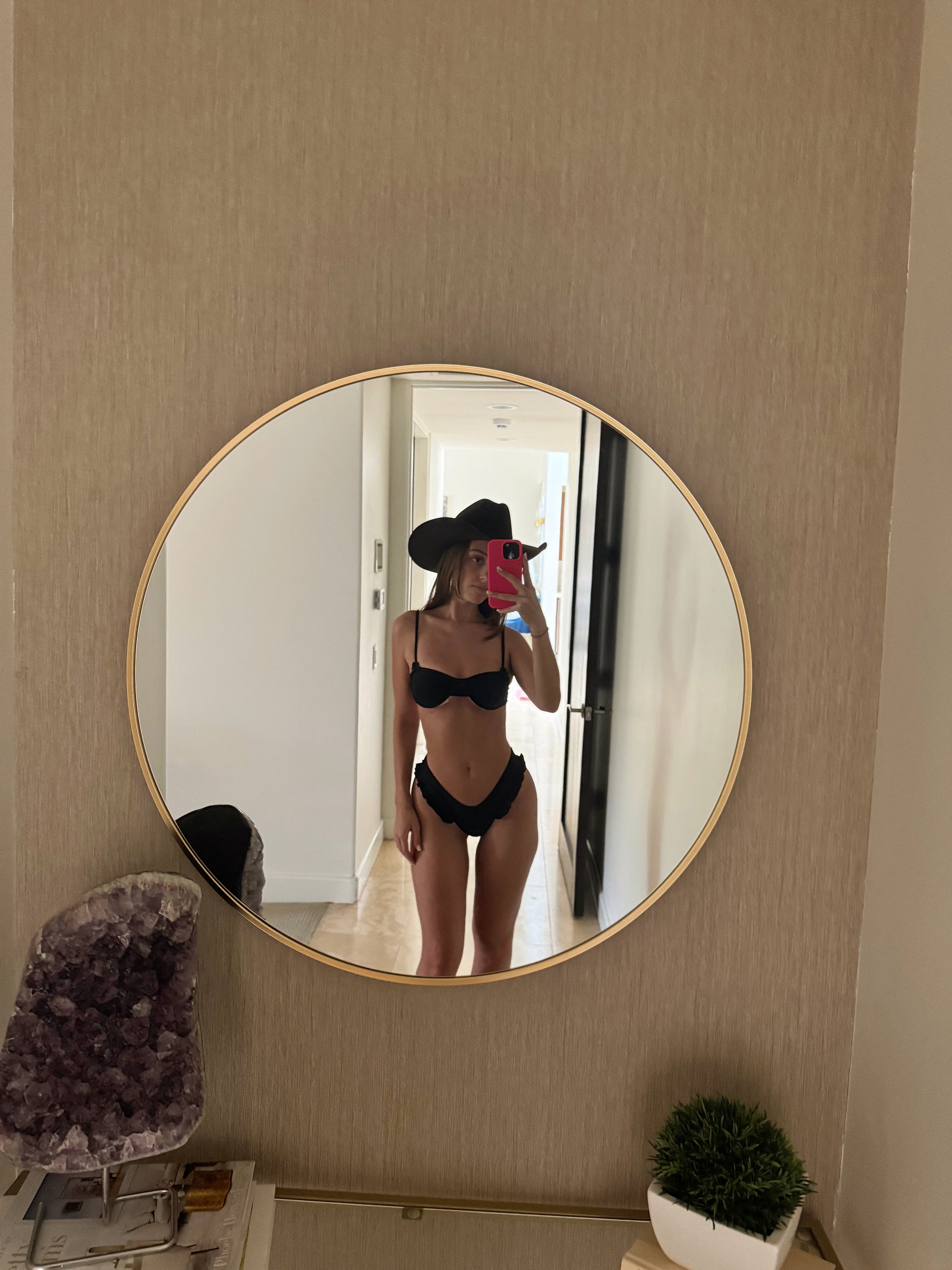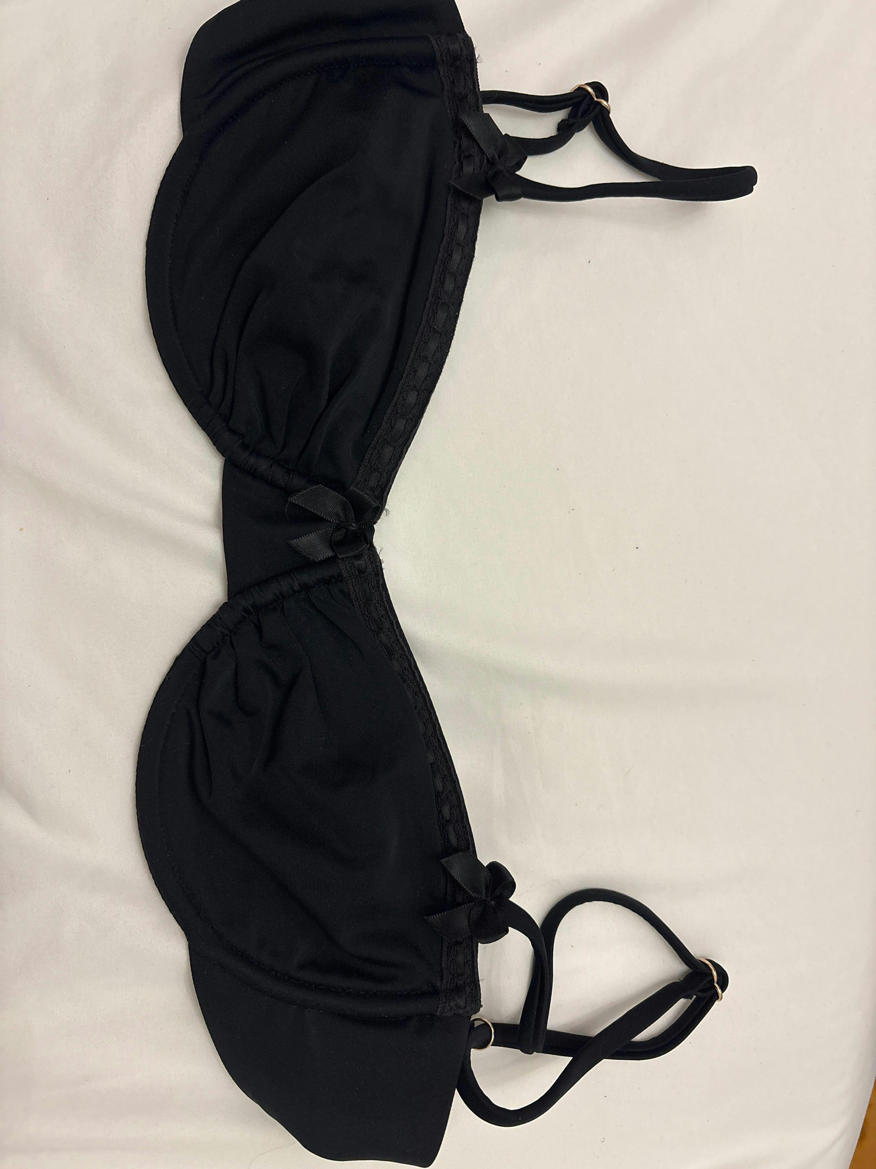 Our Ganache Bikini Top is the ultimate sweet treat for your swimwear collection—decadently dark and irresistibly smooth. This stunning black upgrade to our beloved Desert Cowgirl is crafted to perfection, with wired cups for support, removable padding for versatility, and adjustable spaghetti straps topped with bow accents for a fit that’s as satisfying as the perfect ganache drizzle. The delicate lace trim adds a playful sprinkle of flirtiness, while the clasp-close back ensures your look stays as solid as tempered chocolate!