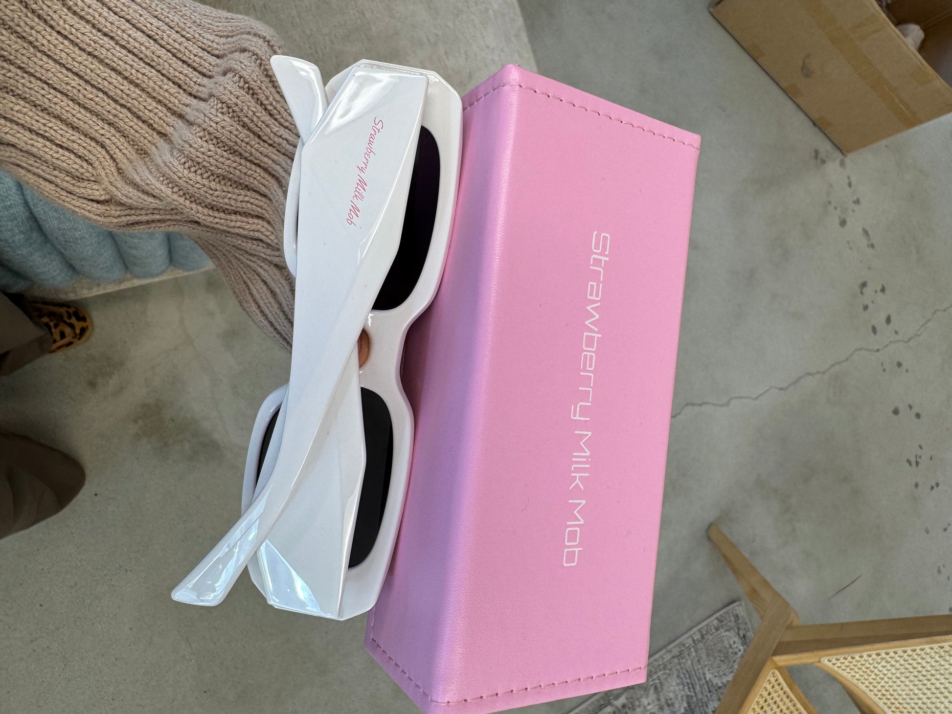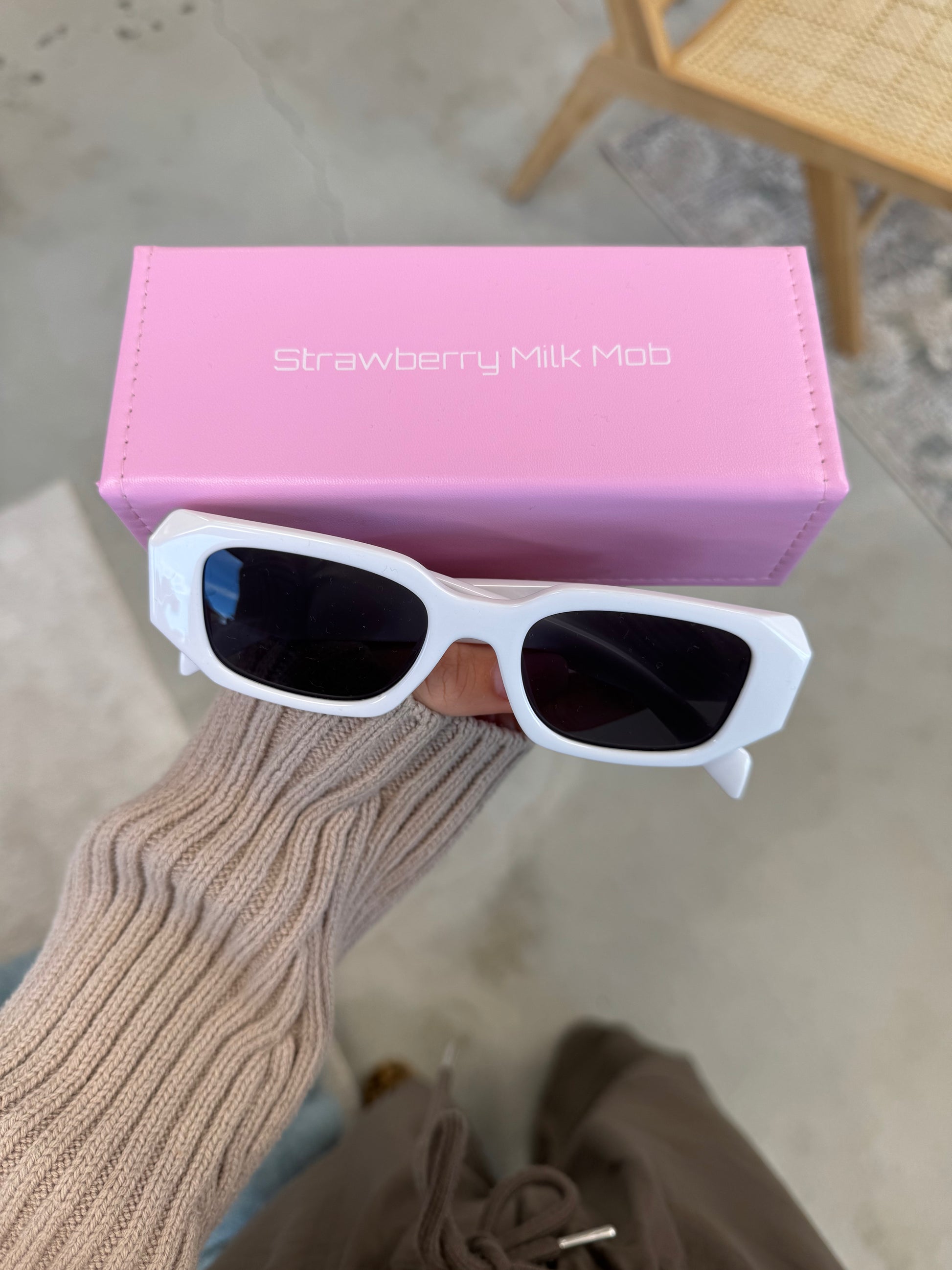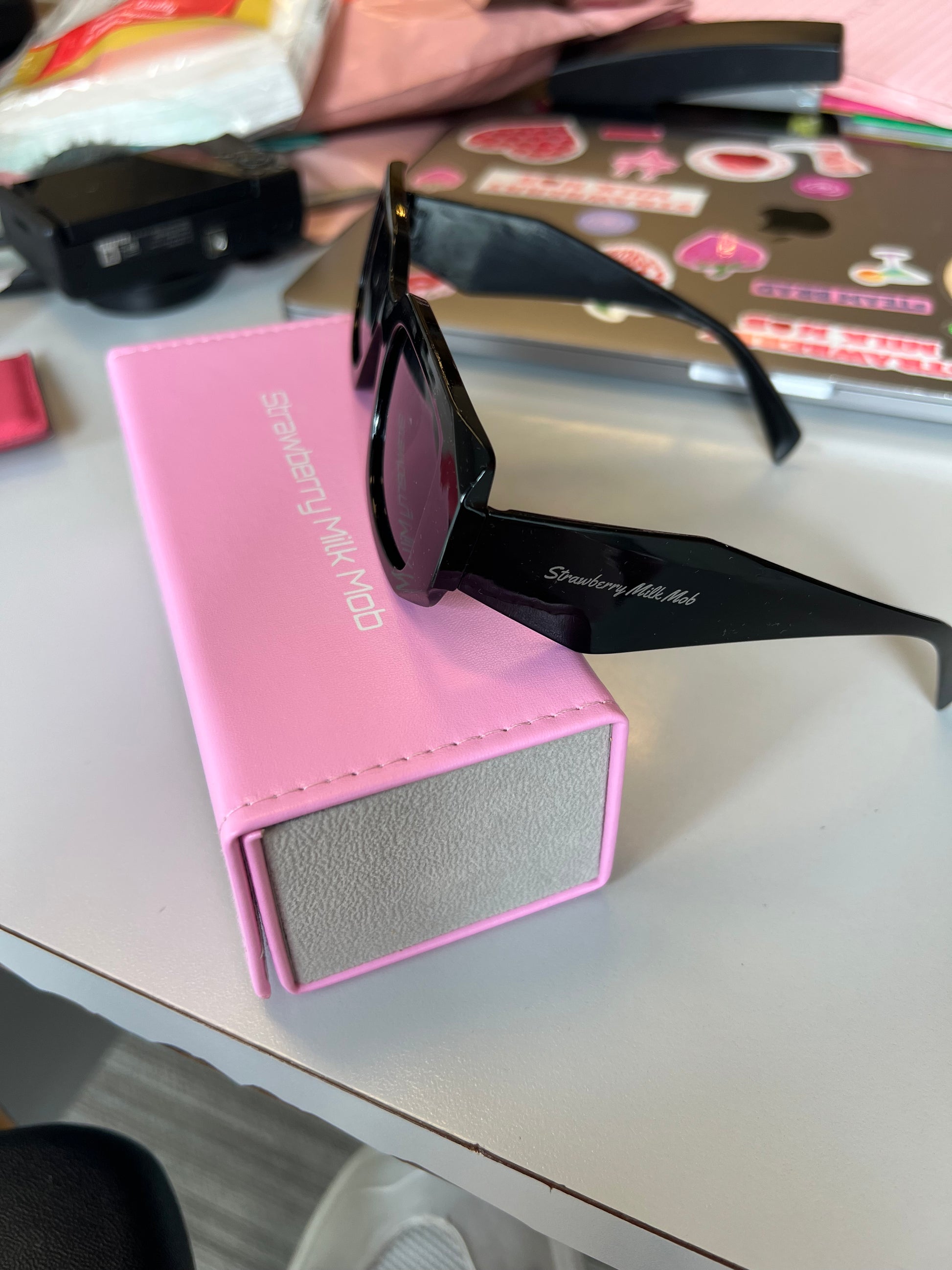 Introducing Georgia's Frames– the lightweight, iconic accessory that has become Georgia's everyday staple. These black sunglasses come complete with a cute pink case sure to keep the frames safe!