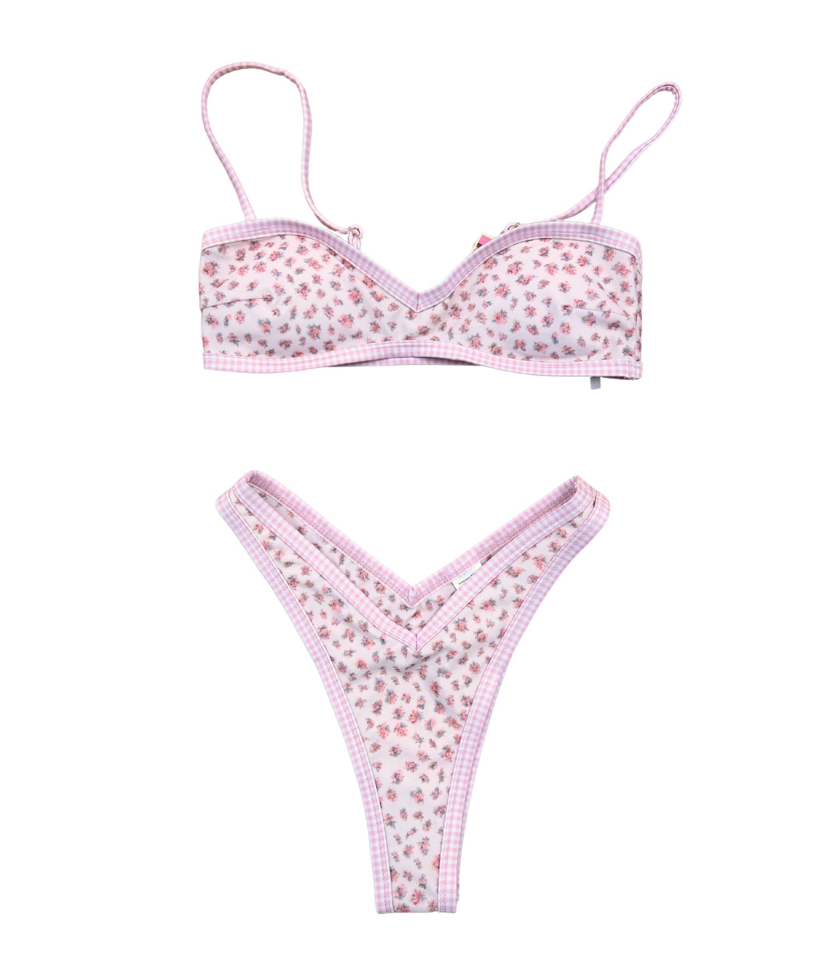 Get ready to sleigh this holiday season in the Gingerbread bikini bottom, part of our Xmas collection! Featuring a dreamy light pink base adorned with delicate pink flowers and a charming pink-and-white gingham trim, this bottom is as sweet as frosting on a gingerbread cookie. With medium-cheeky coverage and the flattering cut of our iconic Cento Bottoms, you'll be serving holly-jolly hottie vibes all season long. Perfect for beachy getaways or poolside celebrations, this is the ultimate piece to unwrap your holiday spirit!
