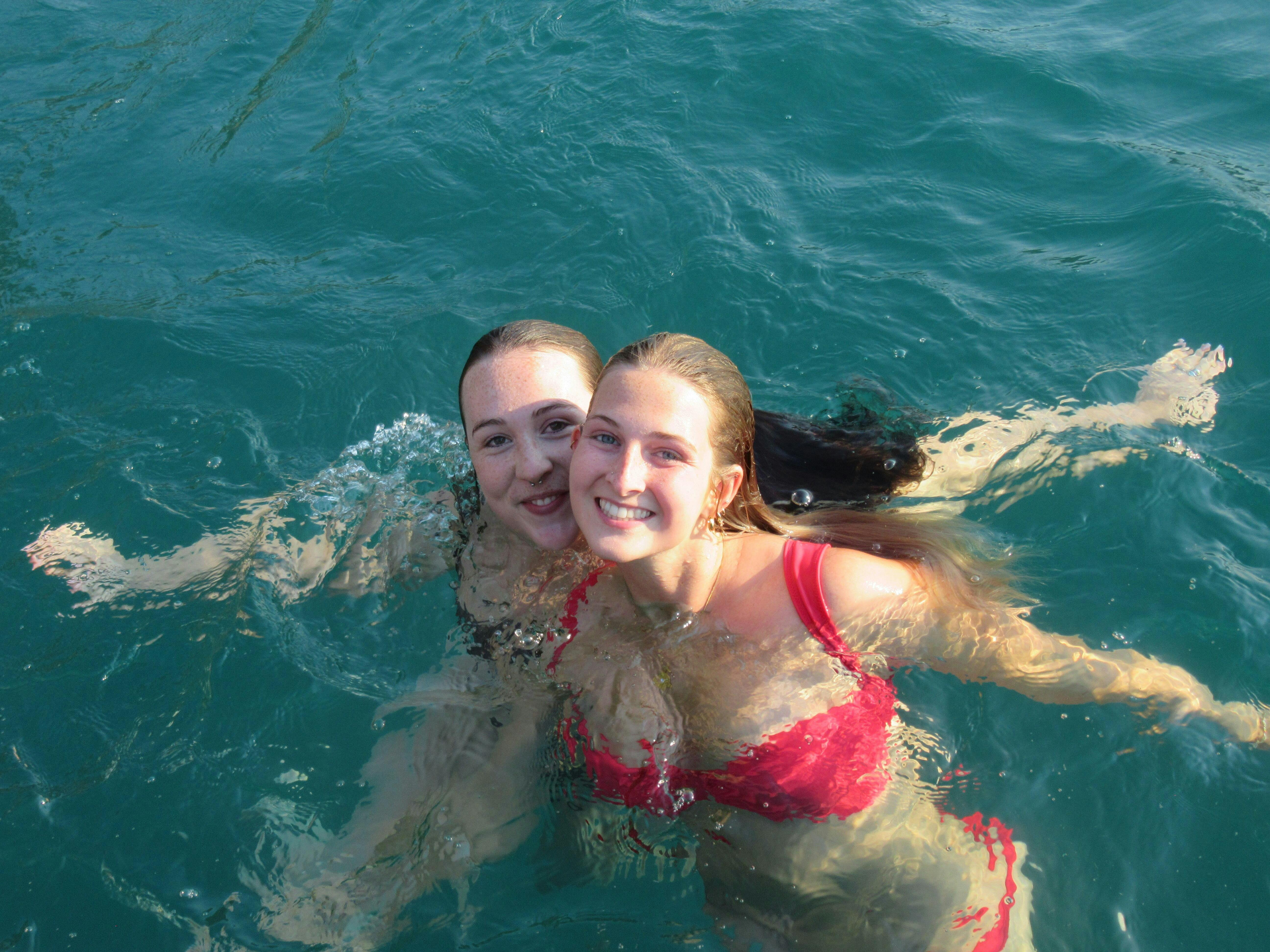- Georgia is wearing a small top