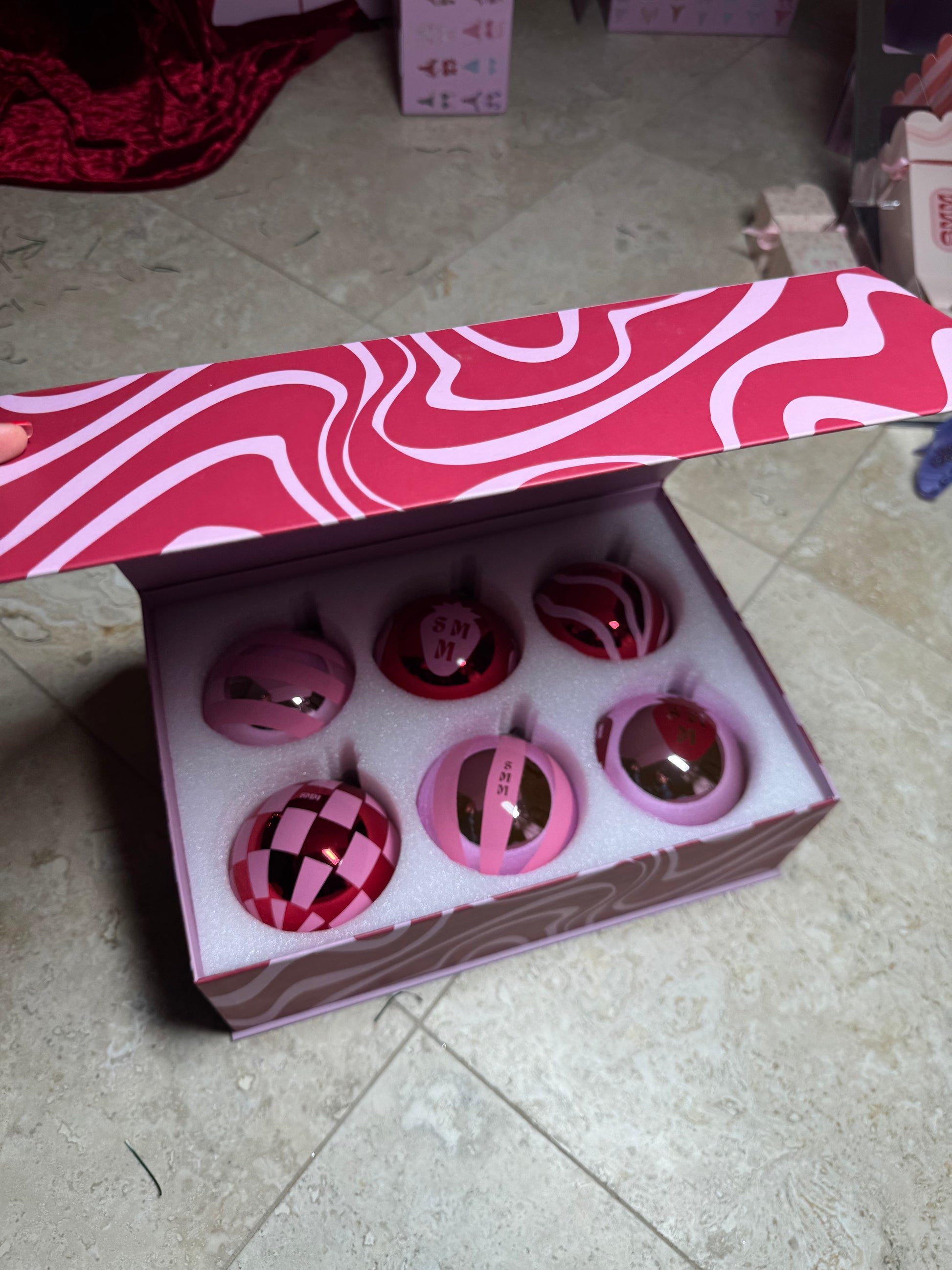 Have the most picture perfect pink holidays with our limited edition ornaments! These large luxurious pink and red glass ornaments offer 6 unique handmade designs that all tie together to create that perfect statement for your tree:)