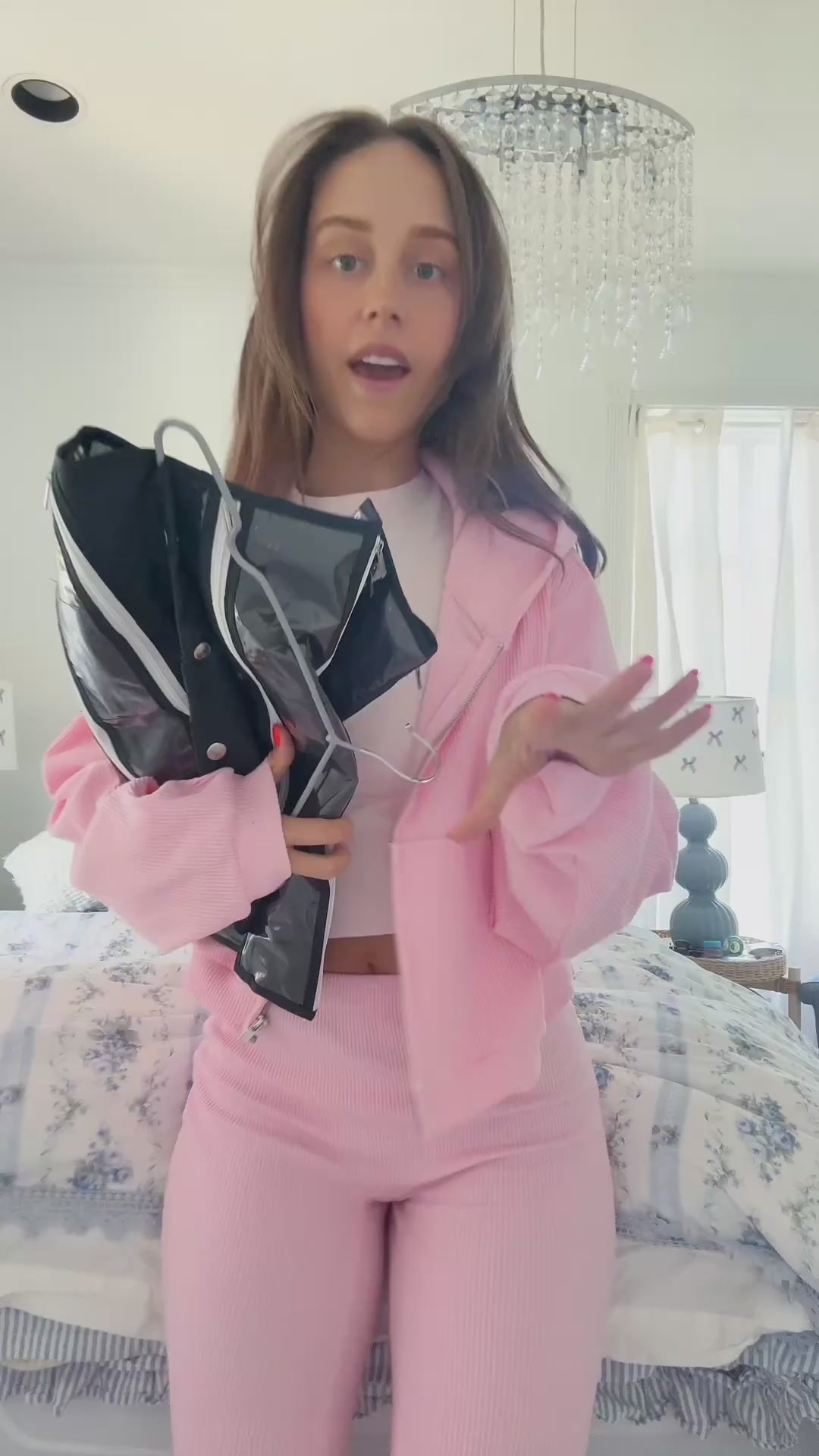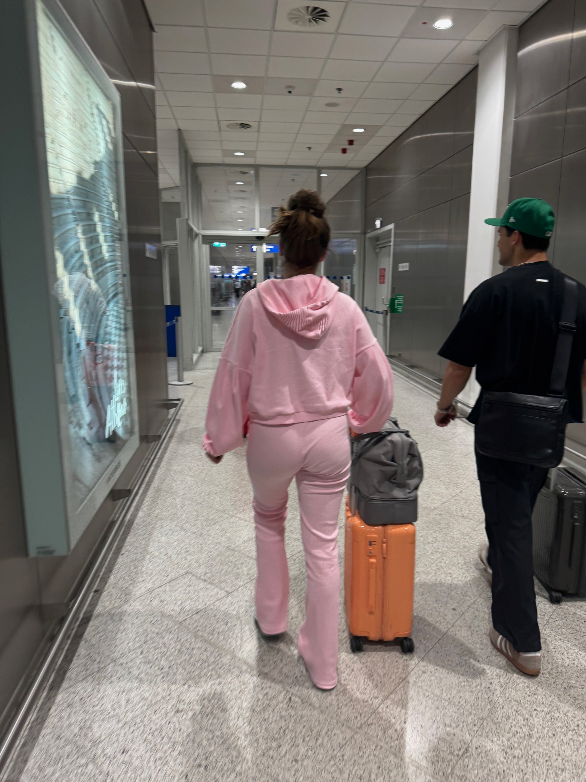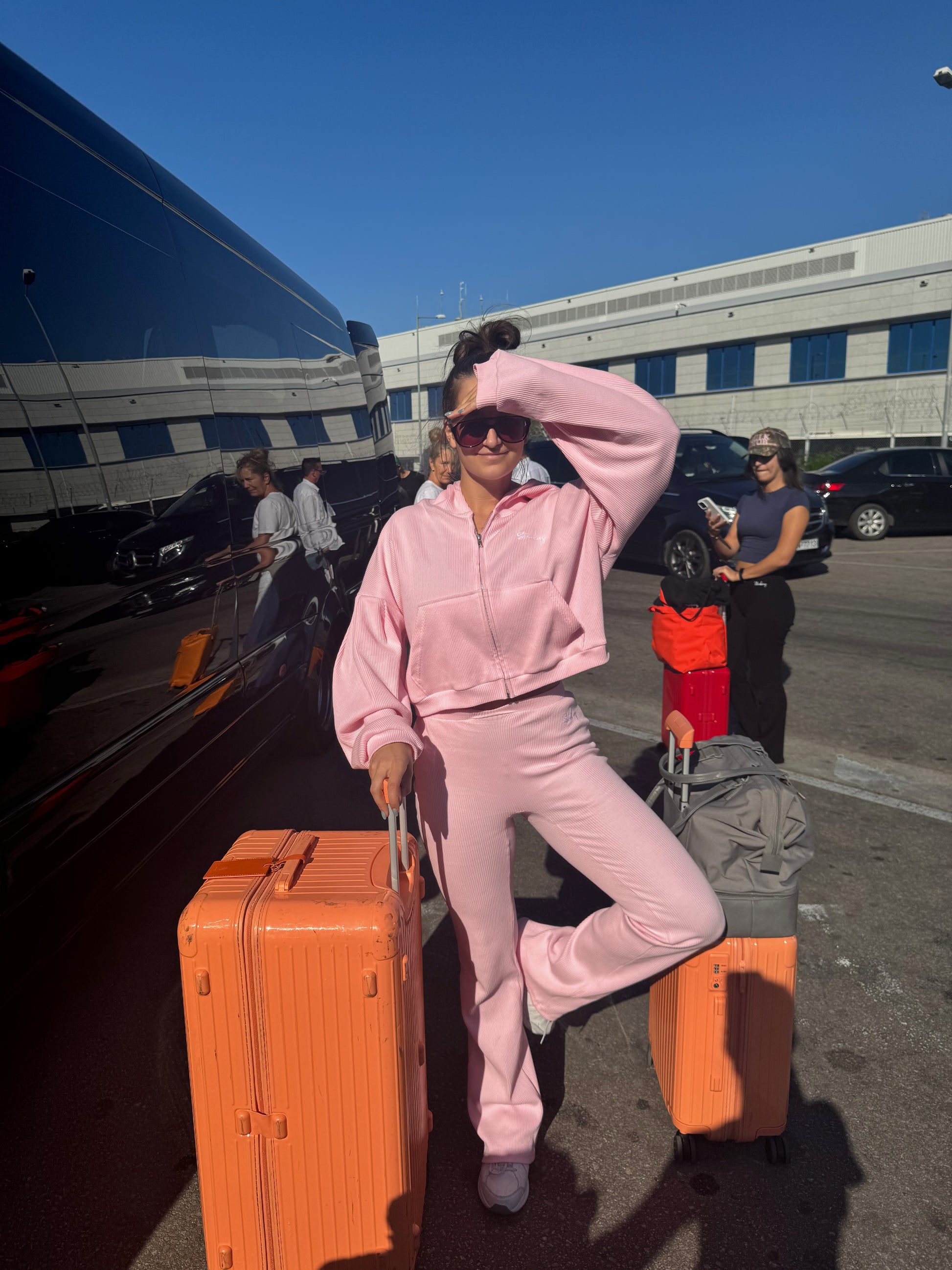 This matching pink zip-up adds a cozy, coordinated touch to your travel outfit, with soft fabric and a relaxed fit that keeps you warm and stylish from takeoff to landing!