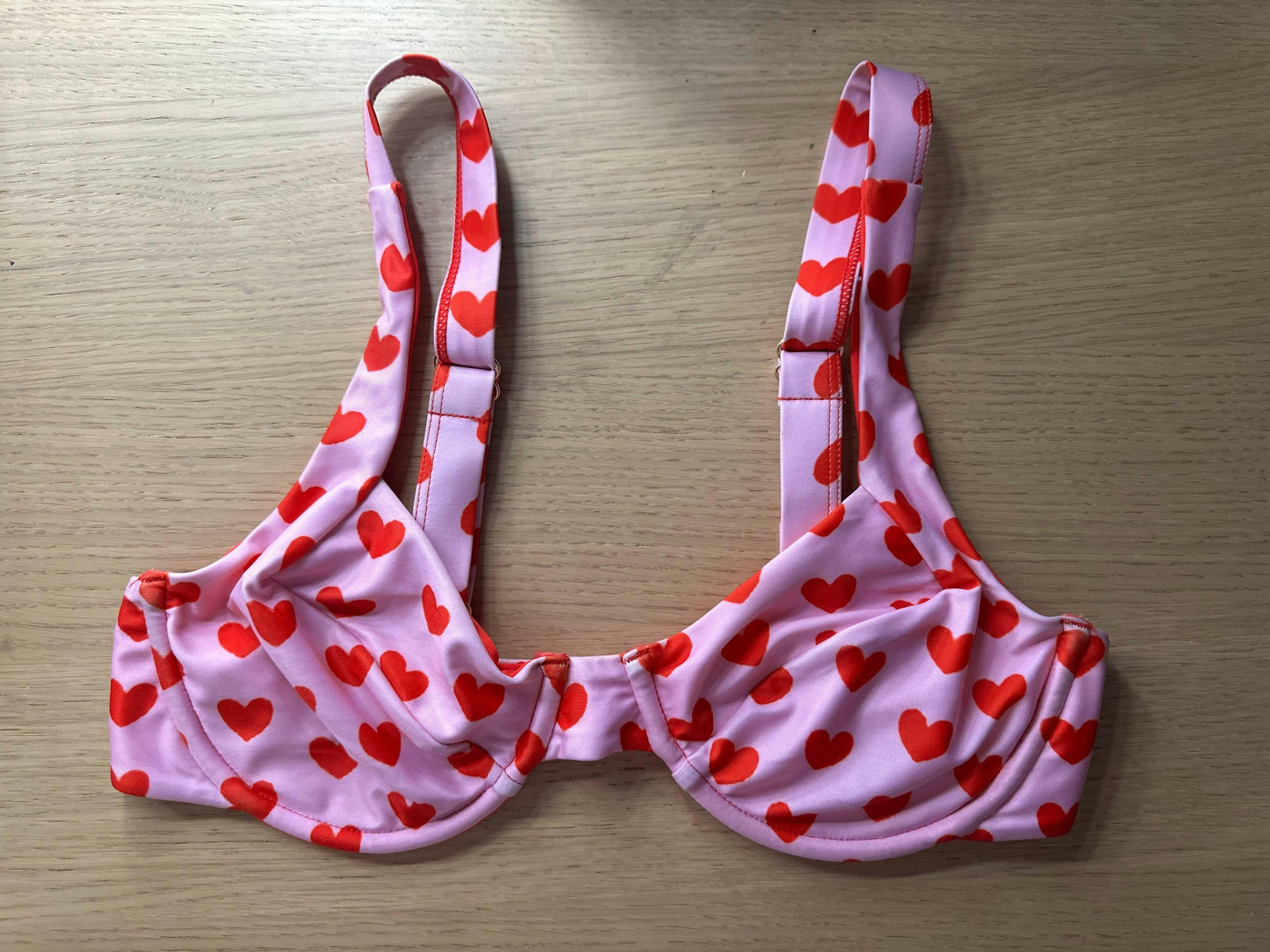 This top is so supportive and blueberry approved (blueberry wears a large) but it’s also itty bitty Approved. Georgia loves this top and loves how it pushes the girls up making them look great. Metal closure class in the back. adjustable shoulder straps. No padding in the top
