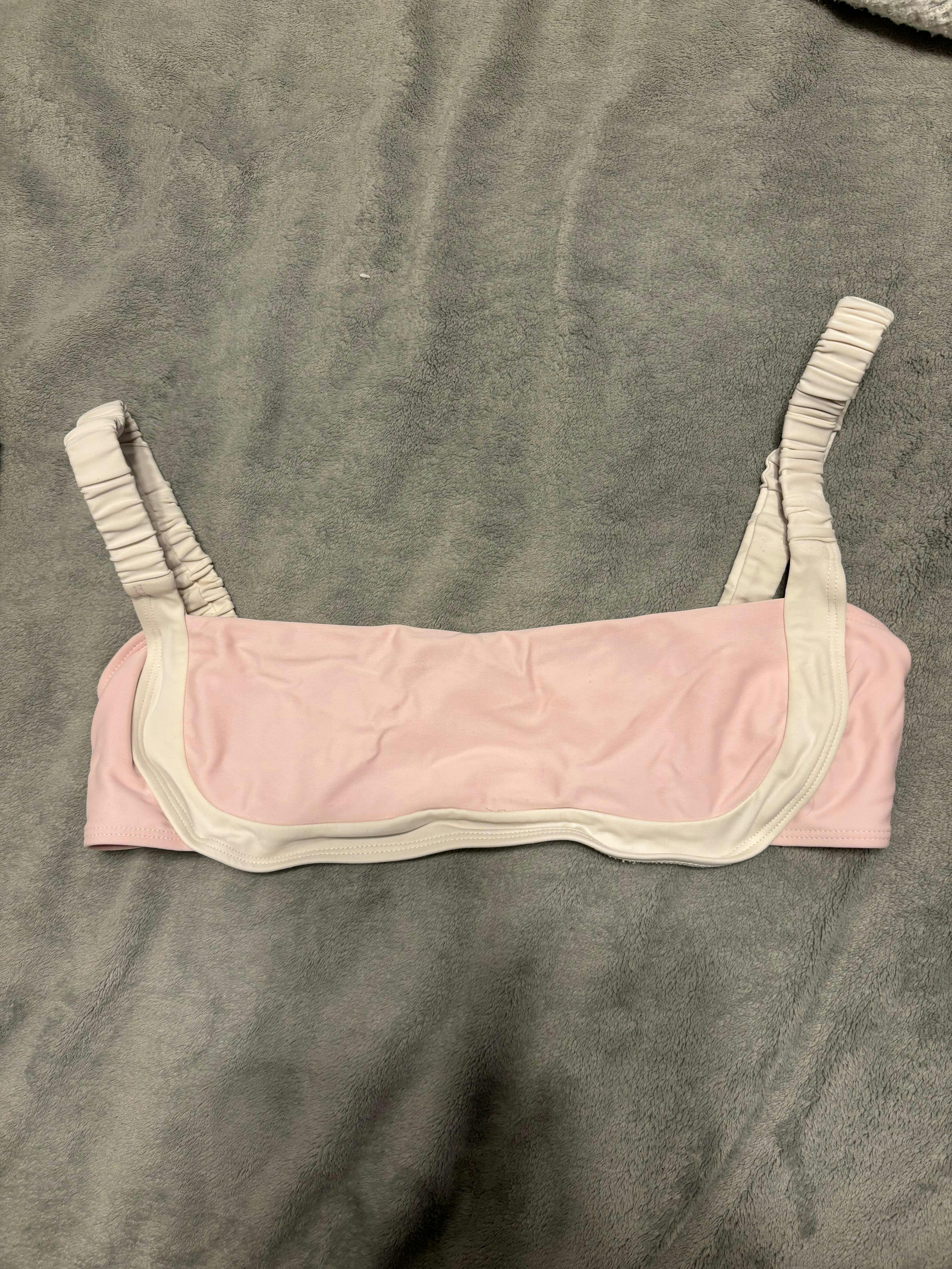 Have a sip of Strawberry Milk – the light pink variant of our beloved "Sporty" bikini. With an innovative design that seamlessly combines athletic aesthetics with a touch of Old Hollywood glamor, Strawberry Milk stands out as a unique statement piece in the world of swimwear. The sleek pink bandeau top is elevated by striking white scrunch shoulder straps that extend and outline the underbust, creating a chic and bold colorblock feature that's both eye-catching and sophisticated. For those who prefer a natural look, this top features no padding, allowing you to embrace your inner elegance with grace.