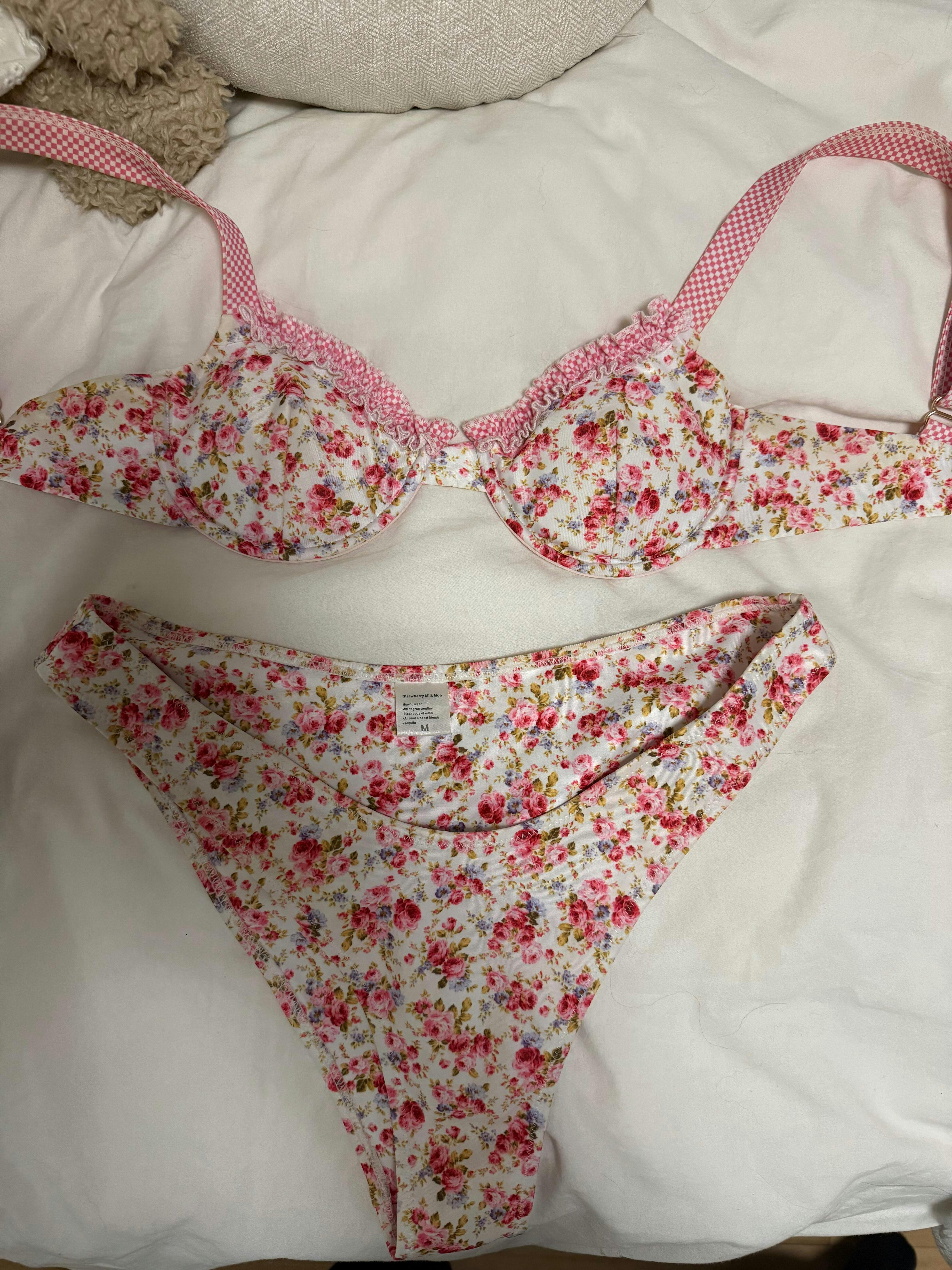 The Young Love Bikini top features a romantic floral print, inspired by some of our favorite frilly cuts from the 60s. This top fits small, as it is a champion for our itty bitty girlies. The padding creates the perfect push-up effect, with the option to remove if preferred, and the shoulder straps are both adjustable. Comes complete with a metal clasp at the back.