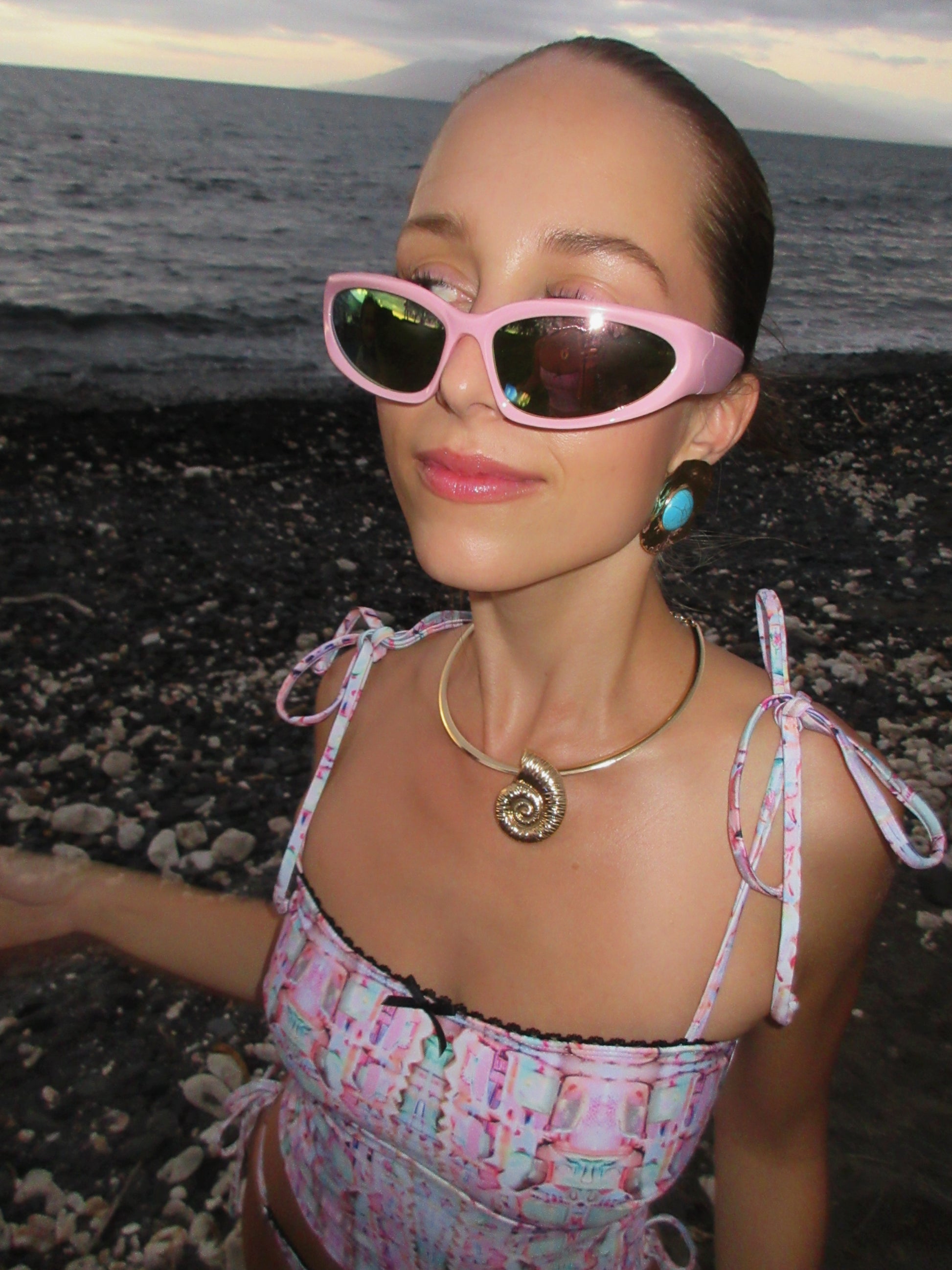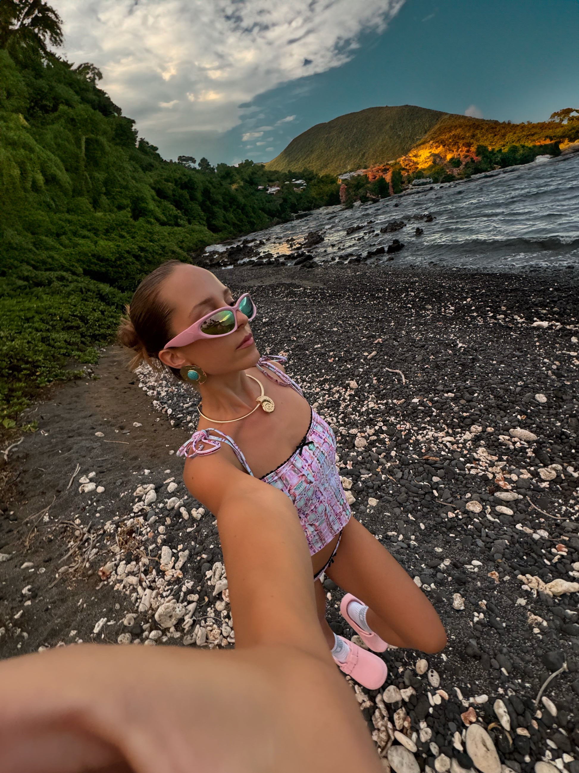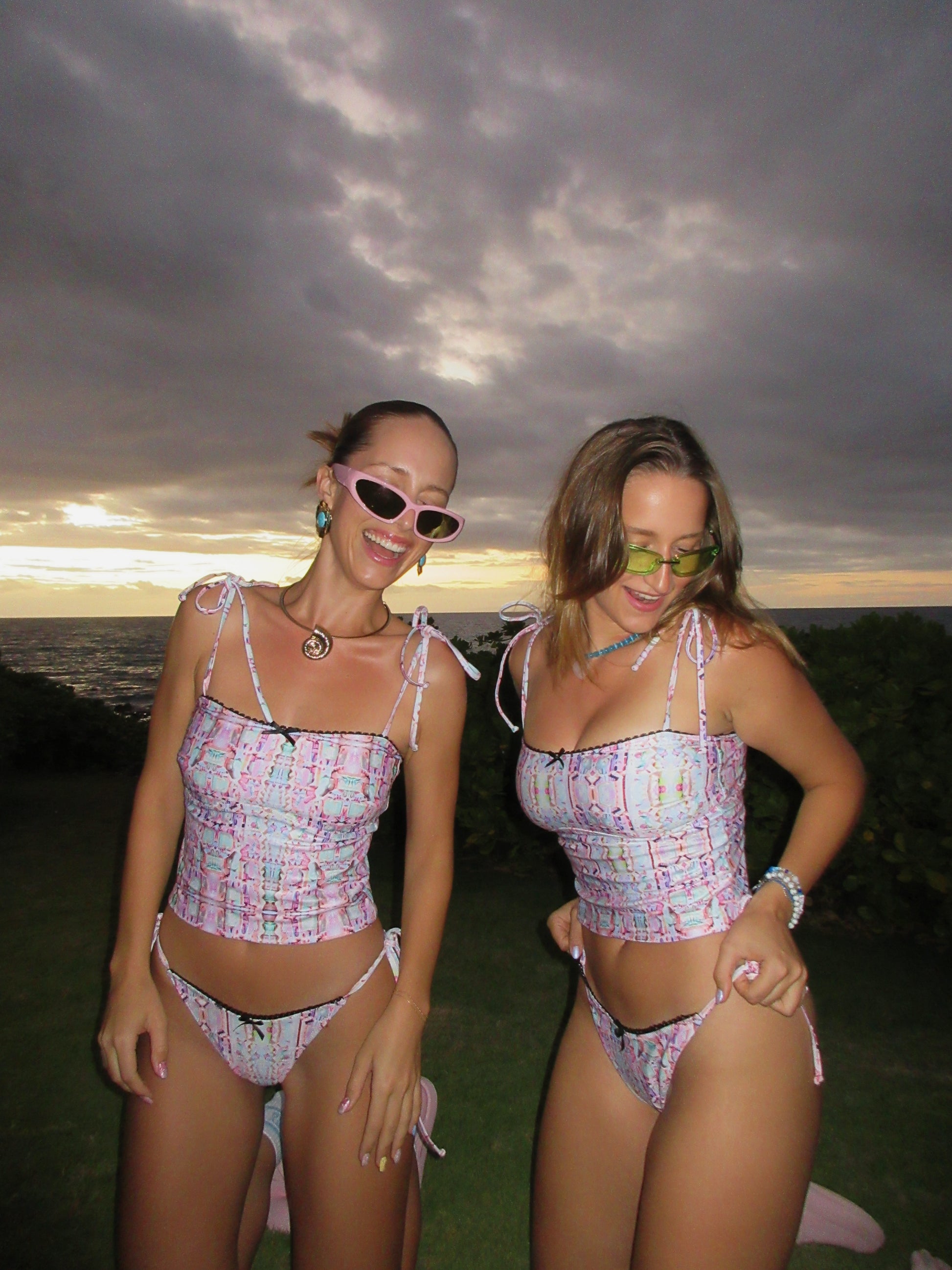 Meet Astro, the tankini top that’s out of this world! Featuring a mesmerizing kaleidoscope print in dreamy hues of pink, purple, and turquoise, this trippy design is perfectly accented with black lace trim and a dainty center bow for a sweet-meets-bold vibe. Inspired by our Orchard tankini, this top boasts adjustable shoulder tie straps to ensure a custom fit, while the no-padding design keeps it effortlessly comfy. Modest? Yes. Hottest? Heck Yes!!!