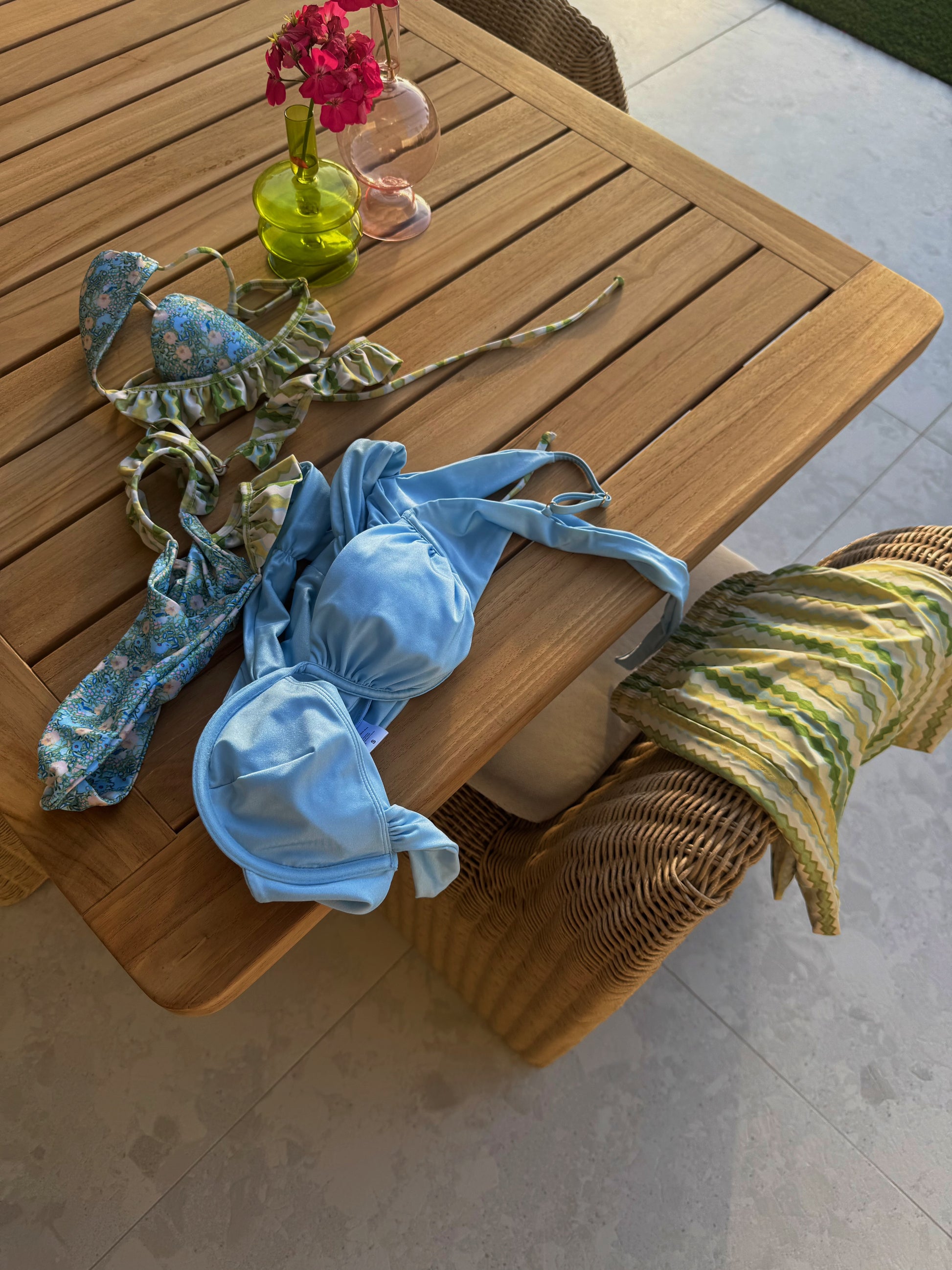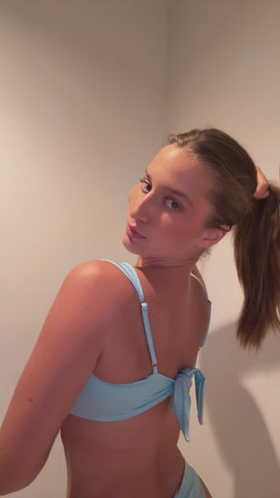 The Currents bikini top brings charged-up style to the shoreline—where electric energy meets the pull of ocean waves.
