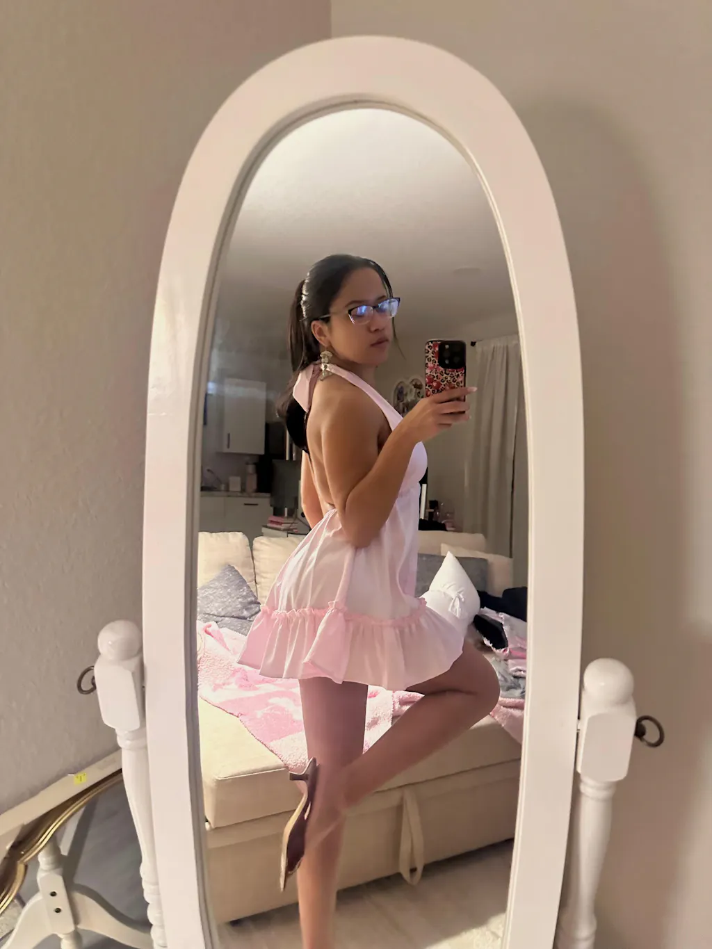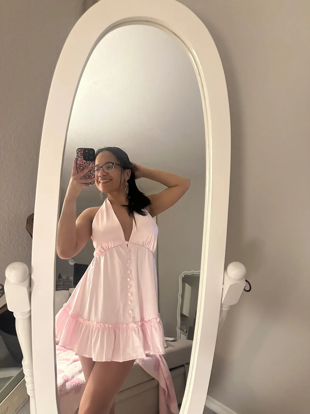 - Georgia is wearing a small dress