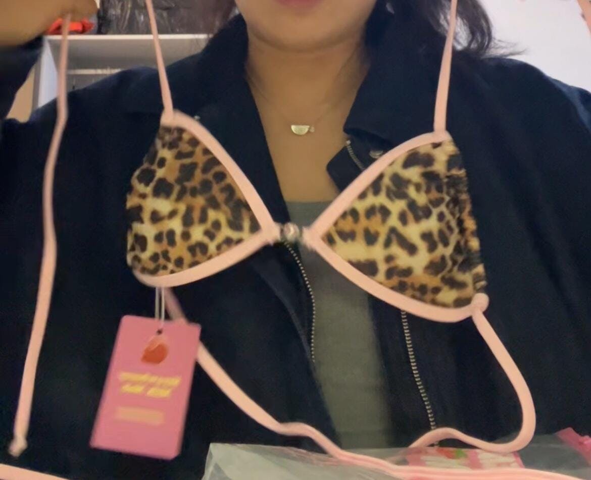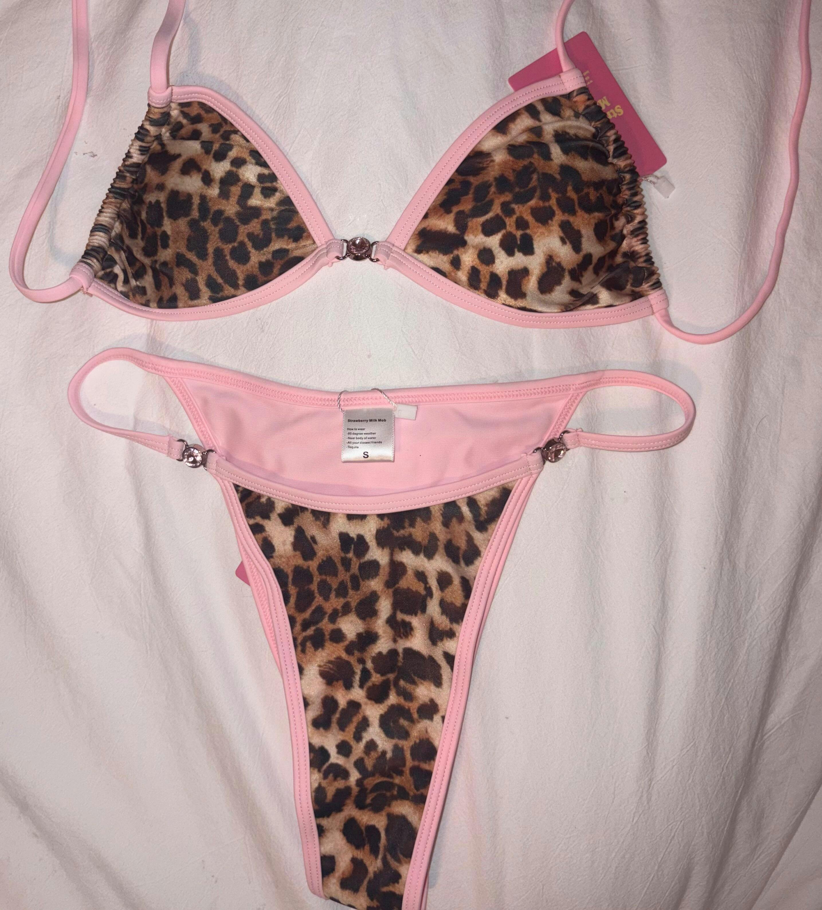 Leopard print and baby pink... say no more!! Meet the Dash bikini top, where fierce meets flirty! This stunning bronze-and-black leopard print design with a soft baby pink lining brings bold style and sweet charm together effortlessly. Featuring the same beloved cut as our classic Milky Way top, Dash offers removable padding and fully adjustable string ties to give you the perfect fit every time. The eye-catching pink gem detail in the center adds a touch of sparkle that’s sure to turn heads. Elevate your poolside look with this must-have bikini top!
