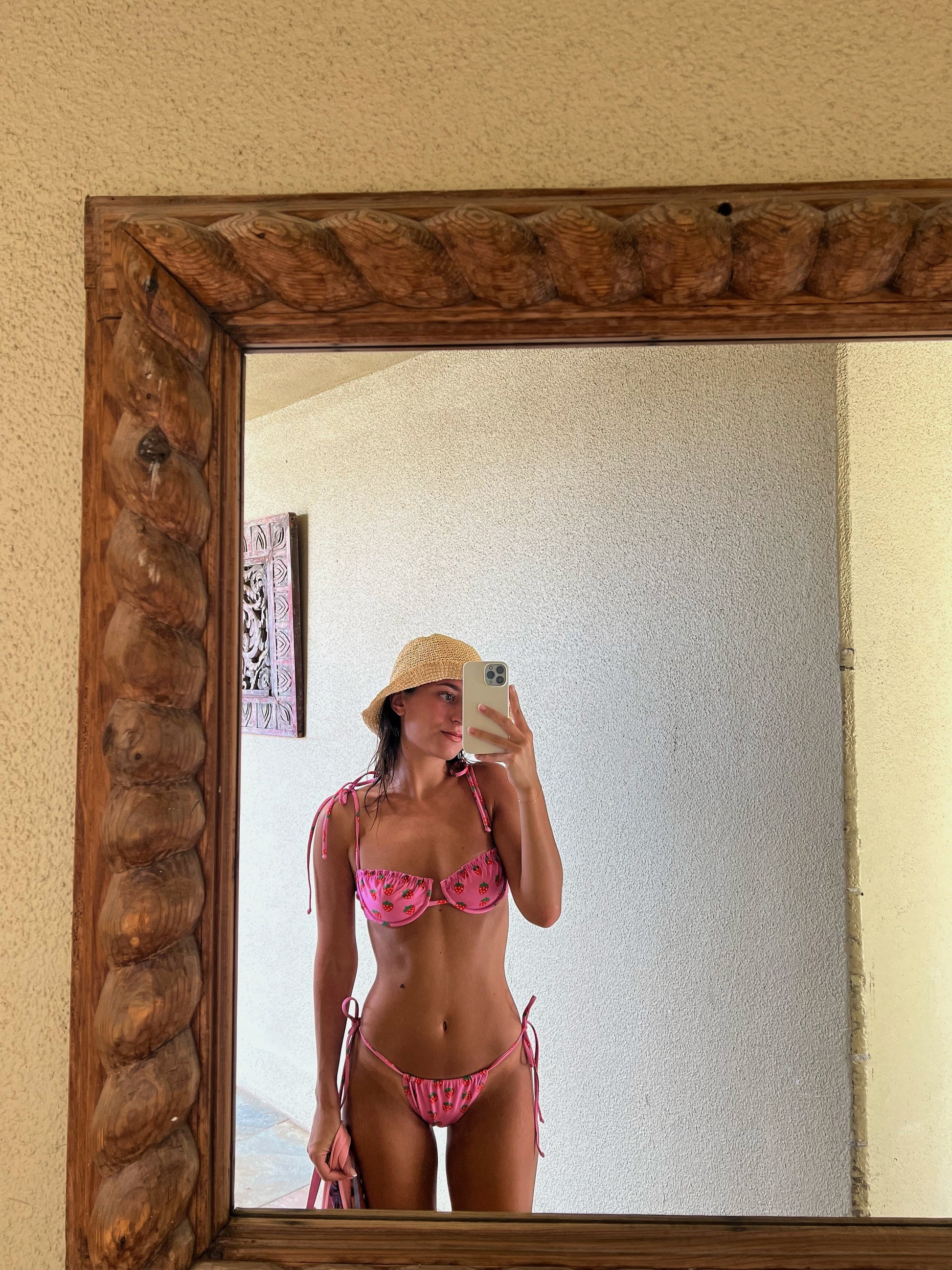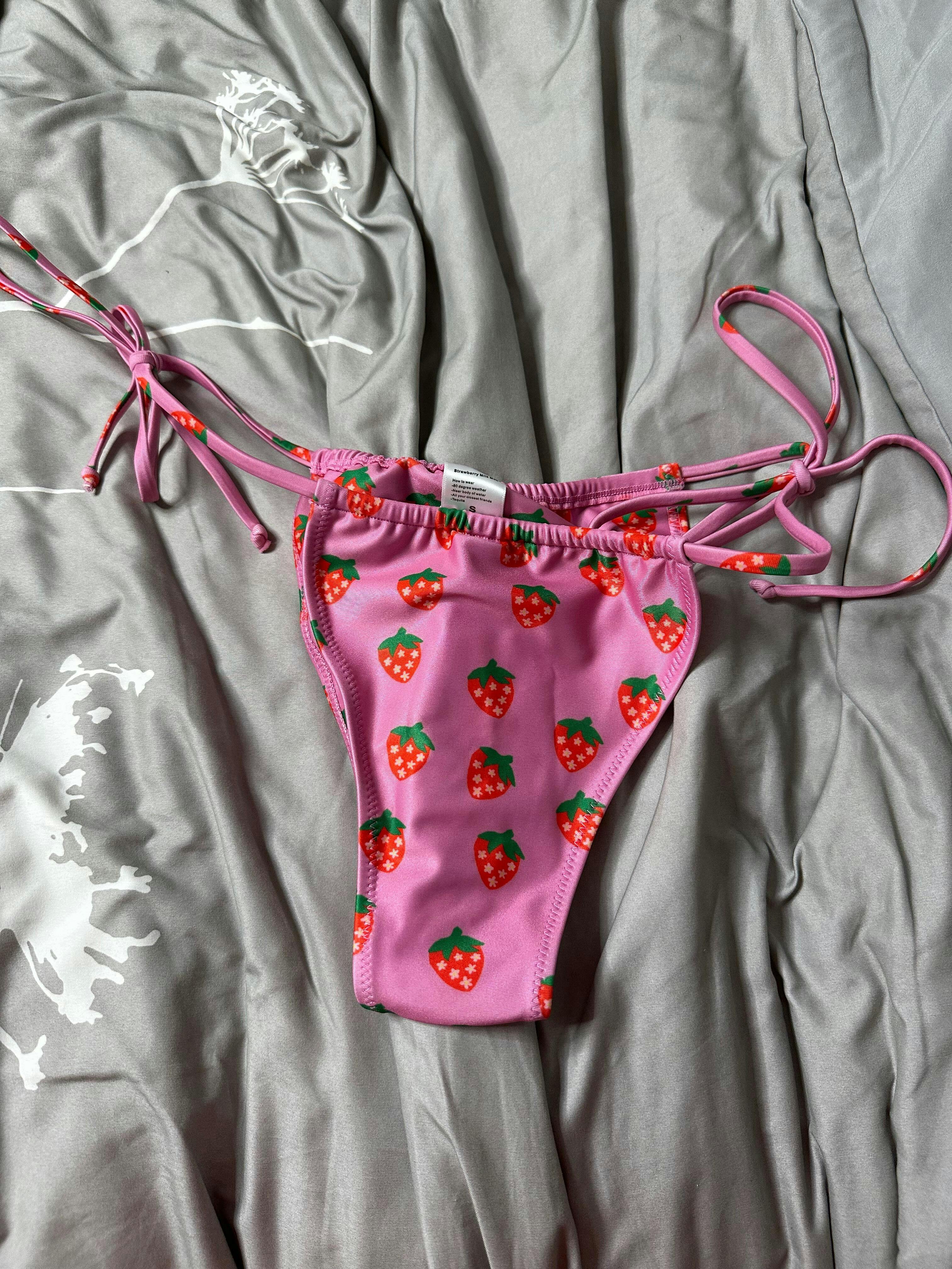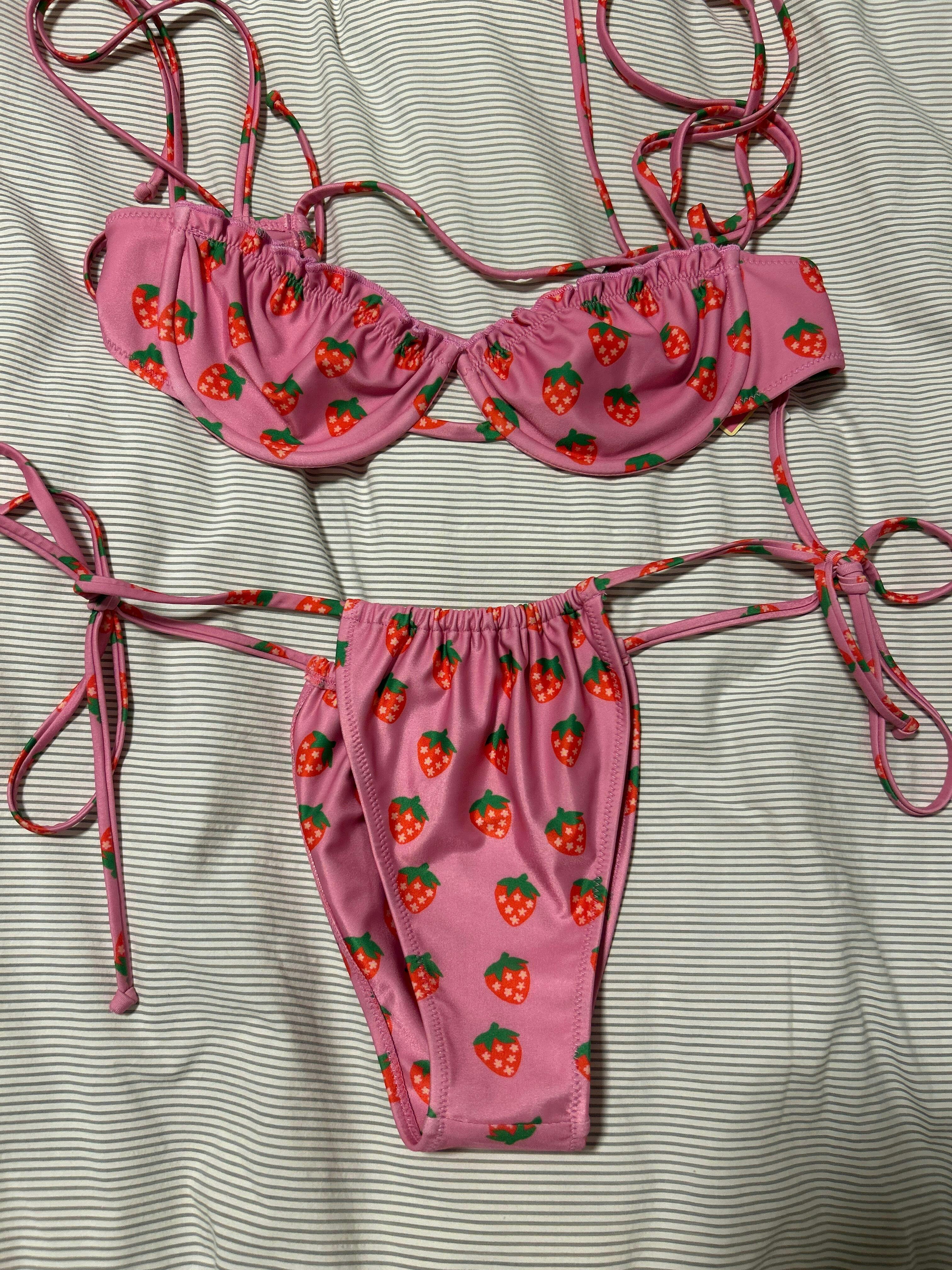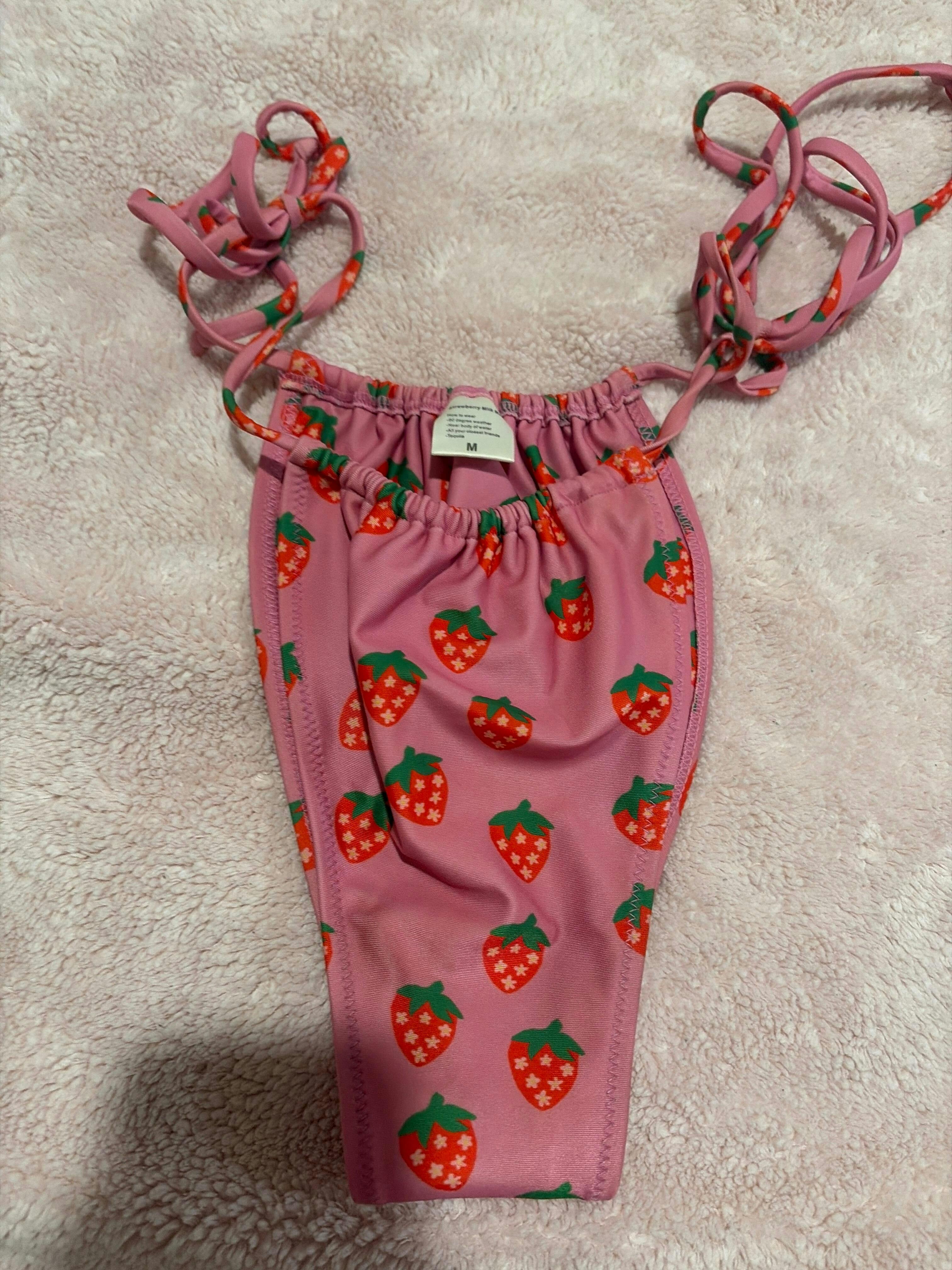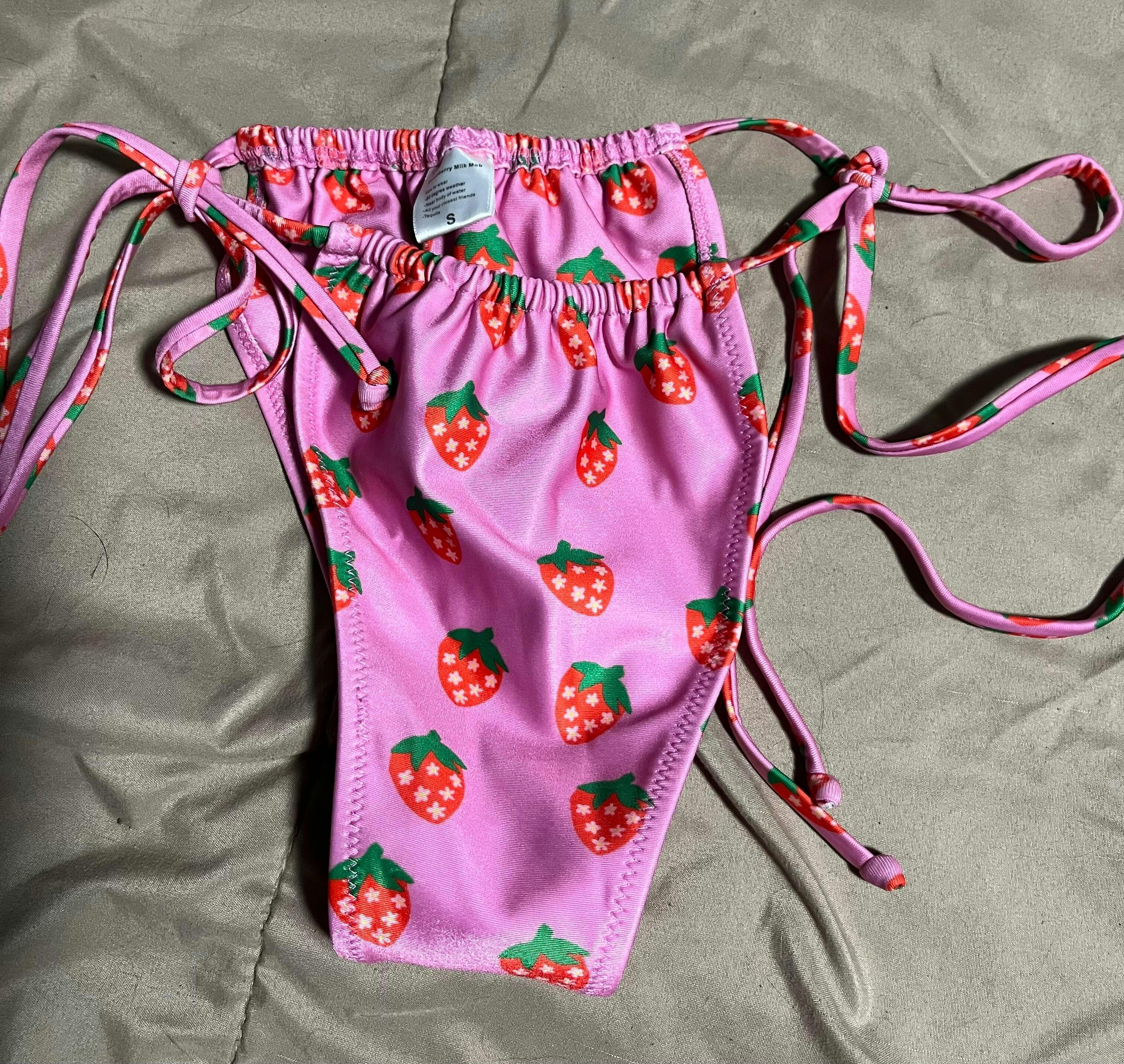 The riper the berry, the sweeter the juice! Our Fragola Bikini Bottoms embrace the essence of summer sweetness, these bottoms feature a captivating pink hue adorned with delightful strawberries with stars for seeds, paying homage to the bikini's Italian-inspired name, Fragola, meaning "strawberry." Designed with the same flattering cut as our cherished Wanda Bottom, these bottoms boast side ties meant to sit high on your hips, effortlessly accentuating your curves with grace and style. Fragola is so sweet you'll want to take a bite!