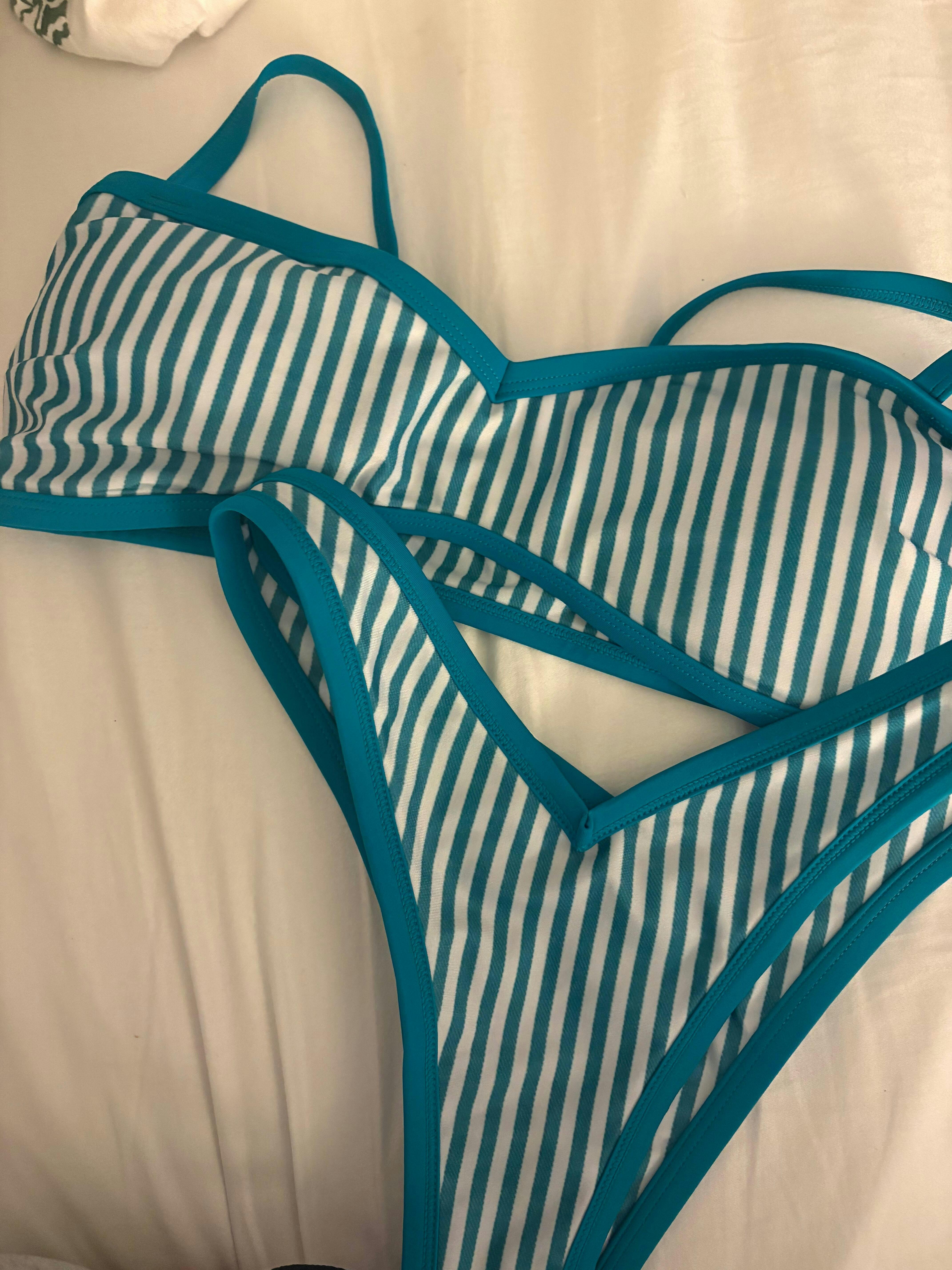 Gimme More!– More stripes, more style. Featuring bold turquoise and white stripes with medium-cheeky coverage, these slip-on bottoms offer the same flattering cut as our iconic Cento Bottoms. Made to hug in all the right places!