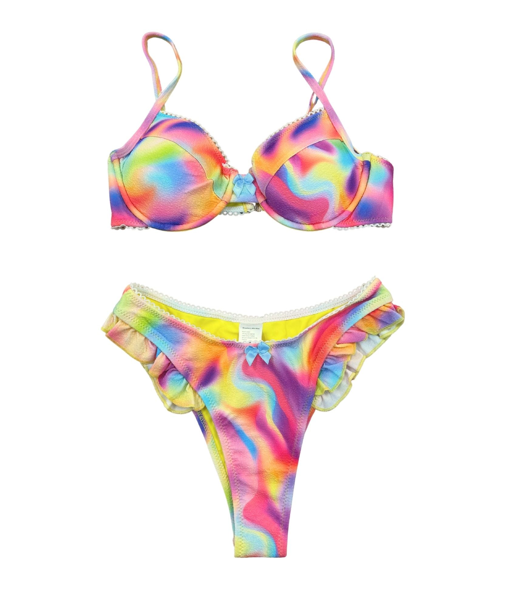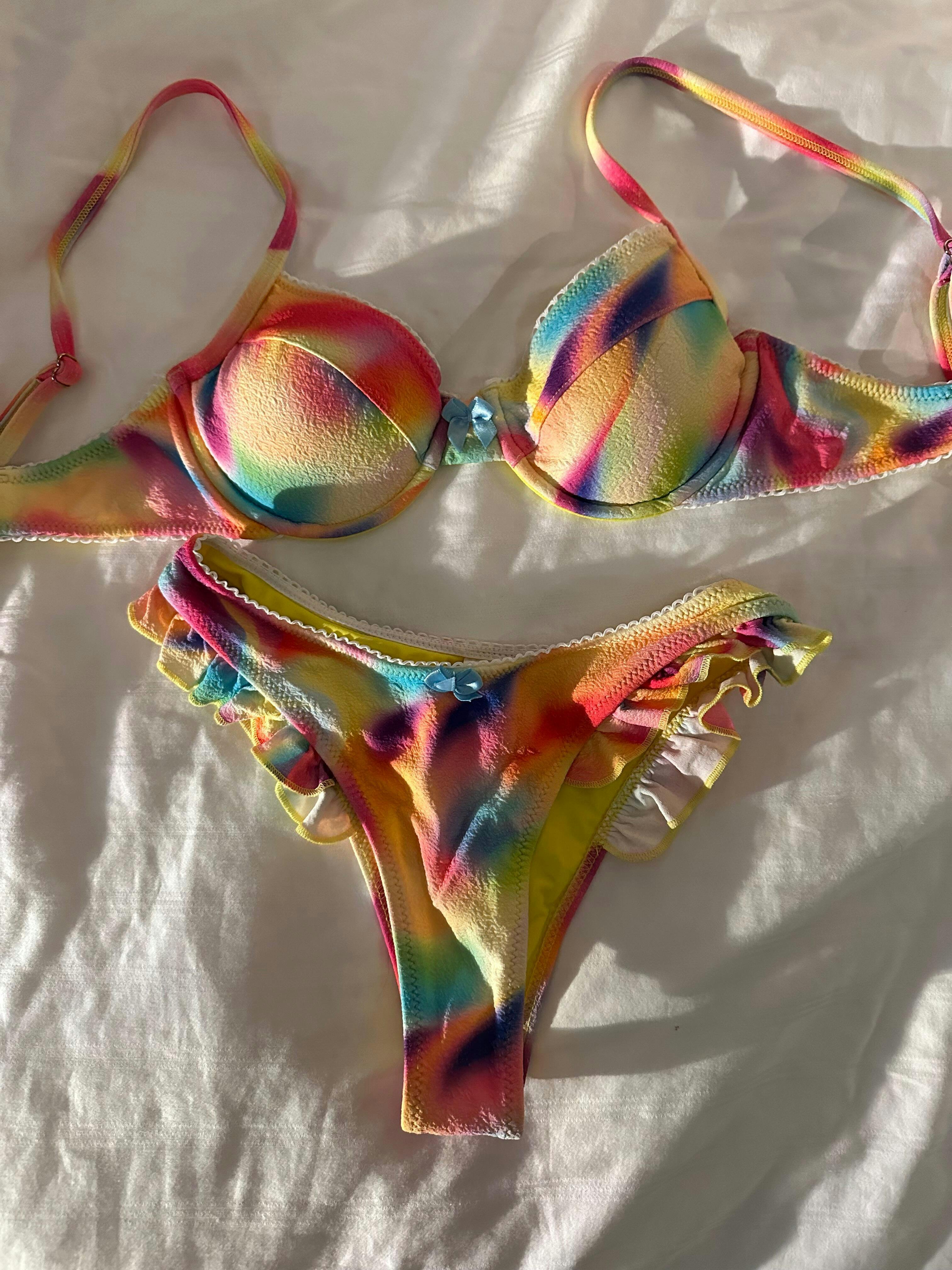 our popular saint tropez bottom. Full bum coverage. Ruffles on the side. Interchangeable with the wet paint styles