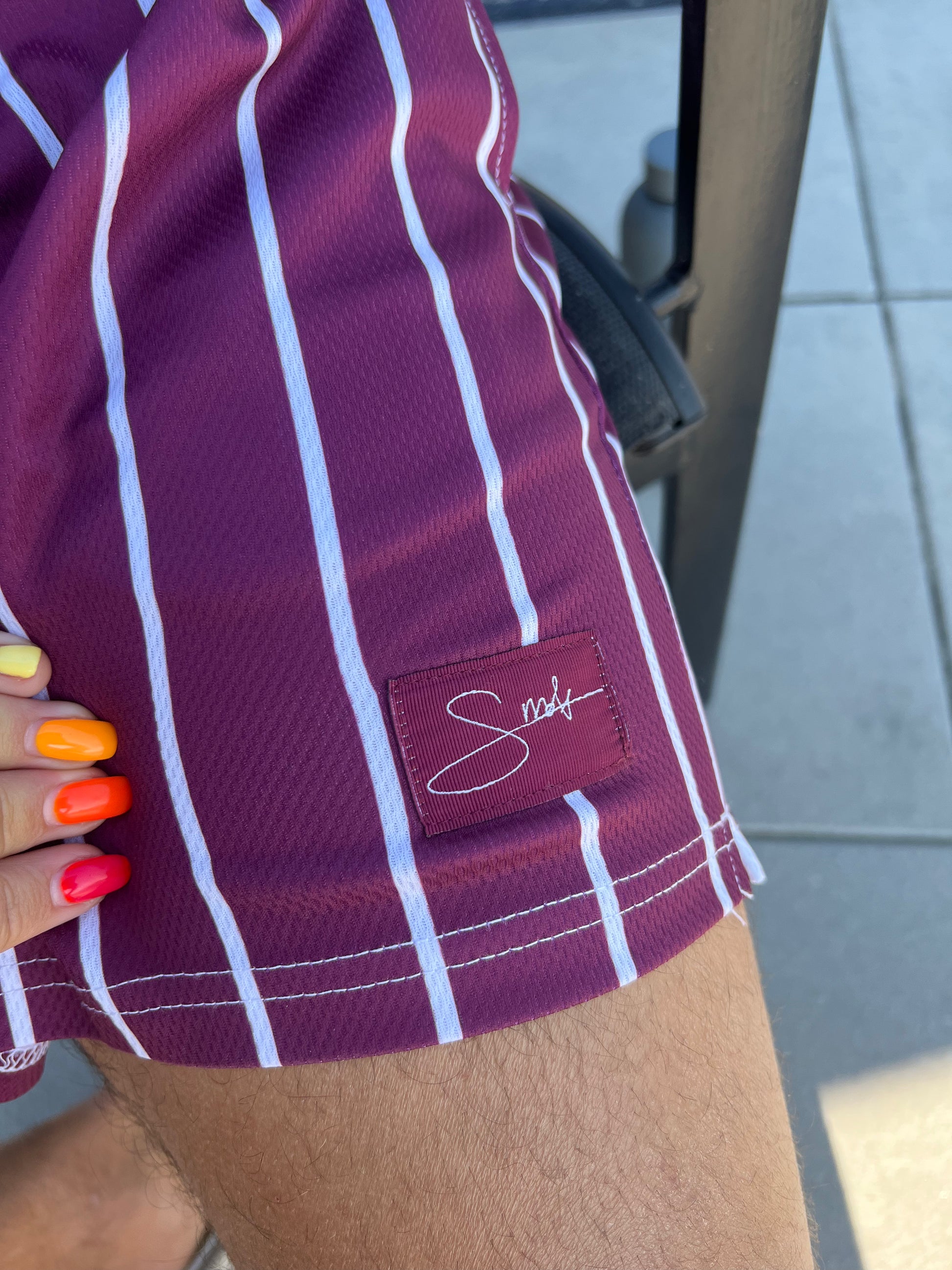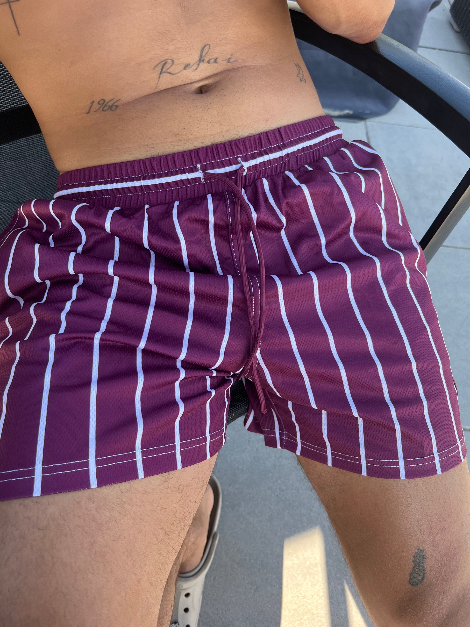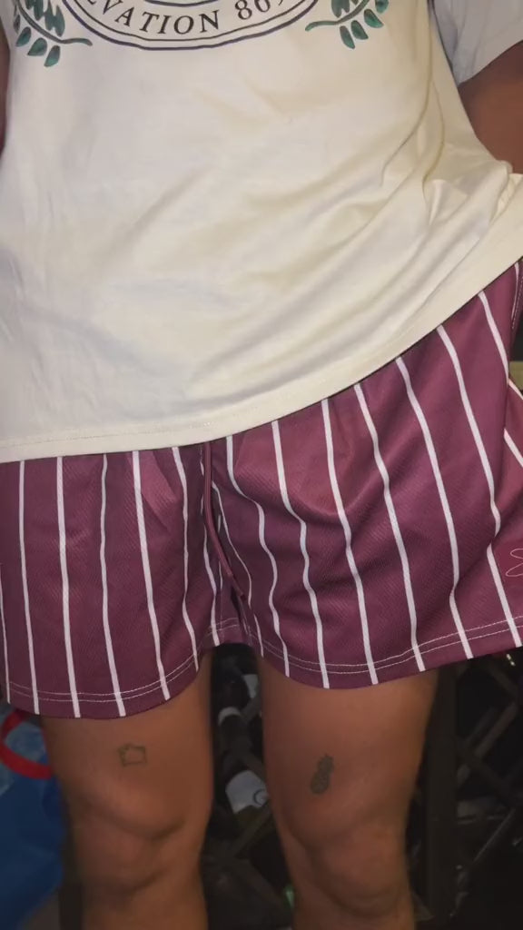Elevate your summer loungewear with our Purple Jersey Short, designed for optimal comfort and style. Crafted from lightweight jersey material featuring a sporty pin-stripe print, these shorts are perfect for leisurely days and relaxed summer outings. With a focus on functionality, these shorts come equipped with two side pockets, each featuring a secret zipper compartment for secure storage, and no lining. The tie string waist ensures a customizable fit, while the 5.5 inch inseam strikes the perfect balance between casual and refined. Embrace the essence of effortless style with these lounge shorts, offering comfort without compromising on your impeccable sense of fashion.