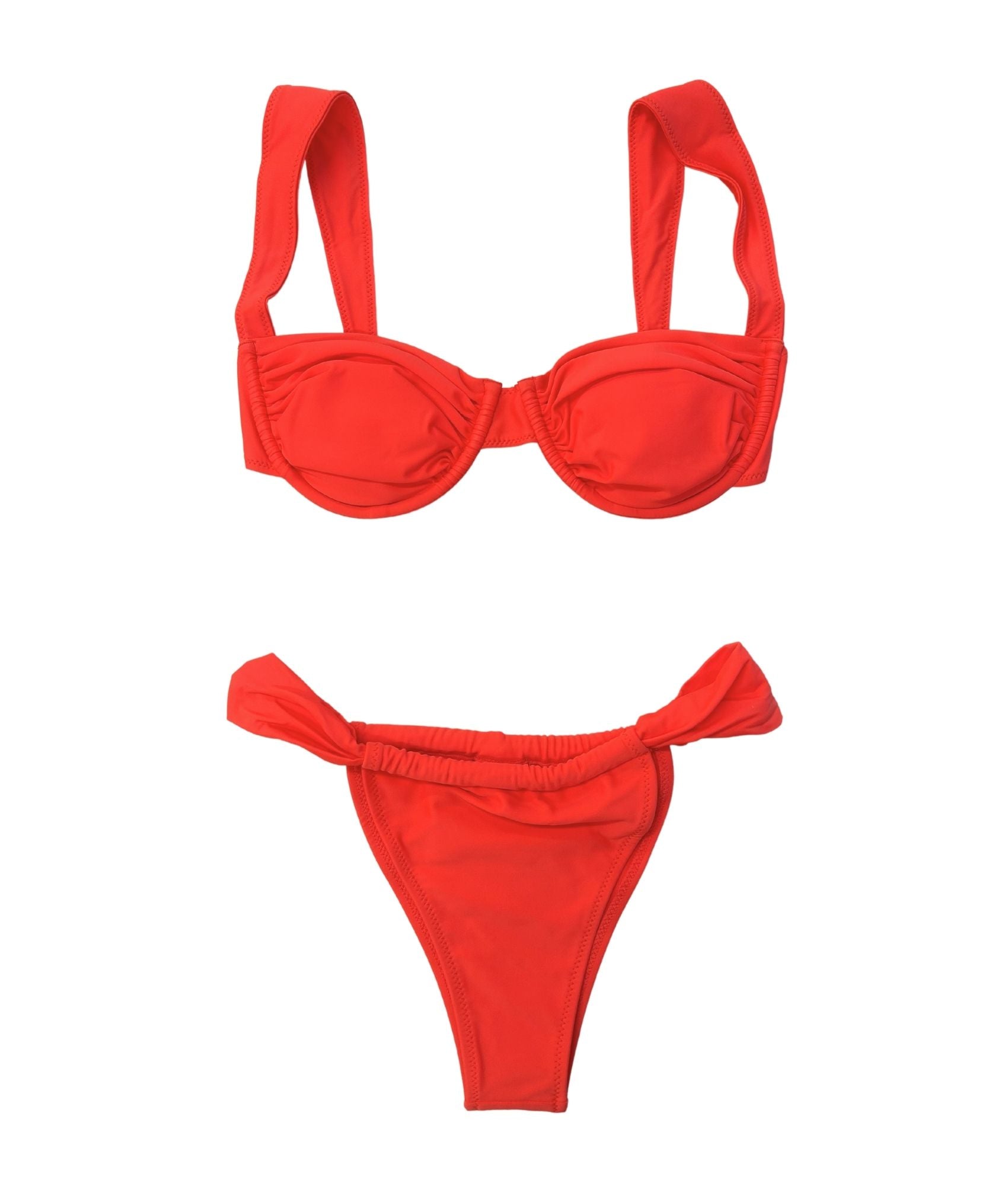 Our best-selling Rosalia bikini style is back and bolder than ever! Say oui to the radiant red La Vie en Rose top—a vintage-inspired bikini that adds just the right sizzle to any swim look. This eye-catching, fiery red hue demands attention, designed to make you pop on any beach day. Featuring underwire cups, removable padding, and a sleek metal clasp back, this top offers the perfect blend of structure and support, so you stay confidently chic and comfortably hot. Ready to paint the beach red?