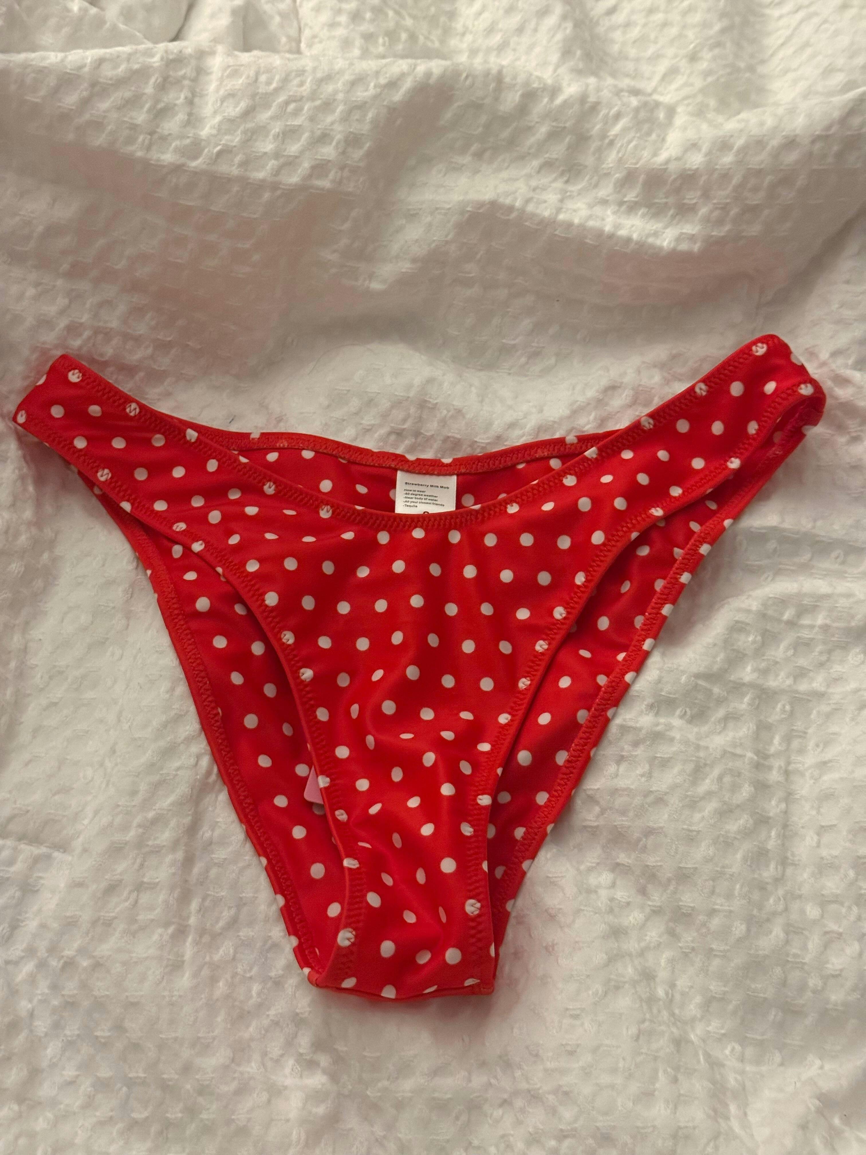 The Minnie bikini bottom, with its iconic red and white polka dots, is inspired by Minnie Mouse’s timeless charm—bringing a playful, nostalgic vibe to your beach look.