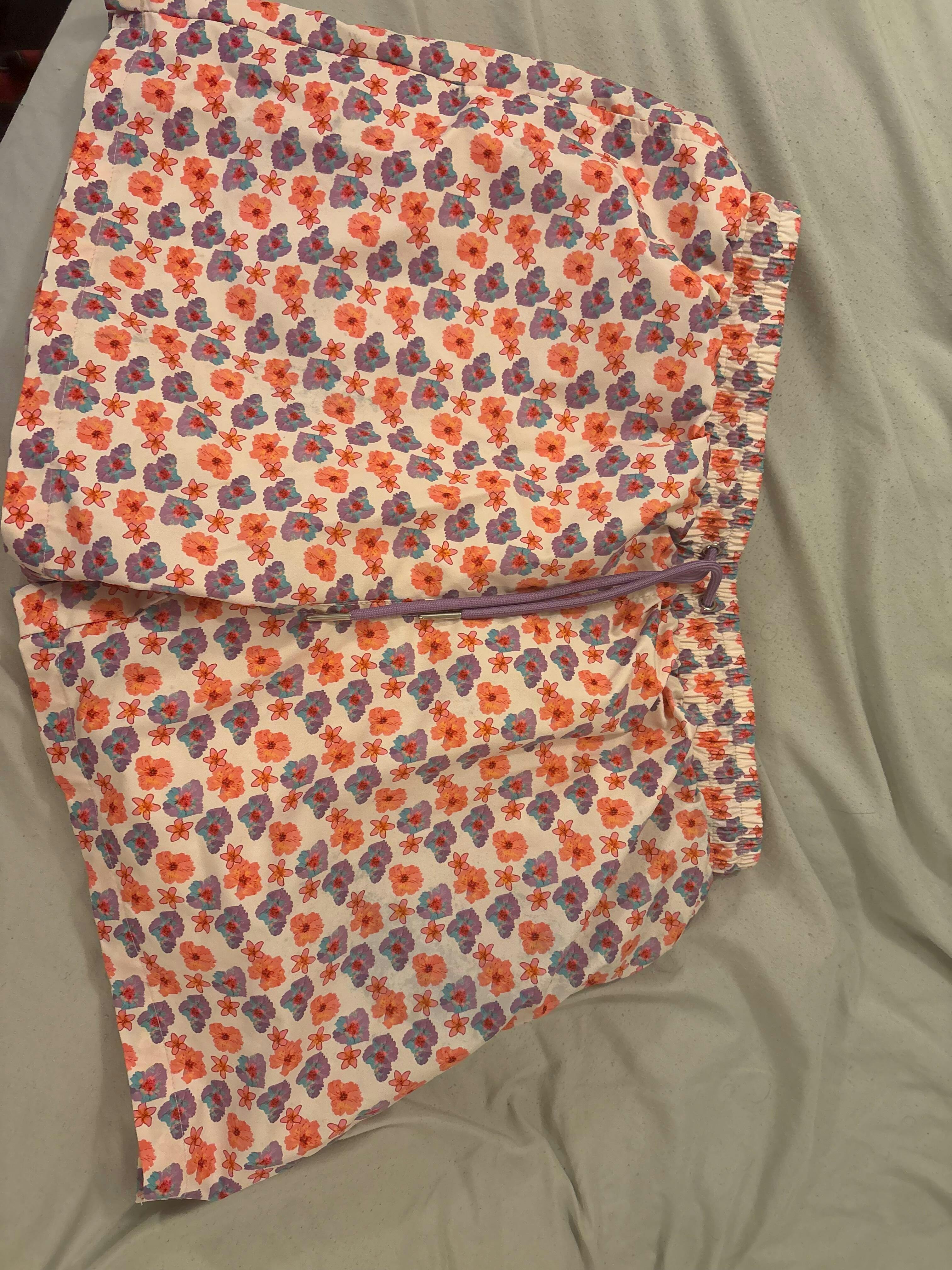 Make Waves in the Paloma Swim Shorts! Dive into island vibes with these tropical floral-print swim shorts, where pink, orange and purple blooms pop against a crisp white base. Designed with a comfy 5.5-inch inseam, and no mesh lining, they're perfect for catching waves and catching compliments on the boardwalk. The adjustable tie waist with sleek metal aglets brings style and comfort together, while hidden-zippered side pockets keep your essentials secure, whether you're in Maui or your backyard paradise. Matching moments never looked this good—aloha, style!