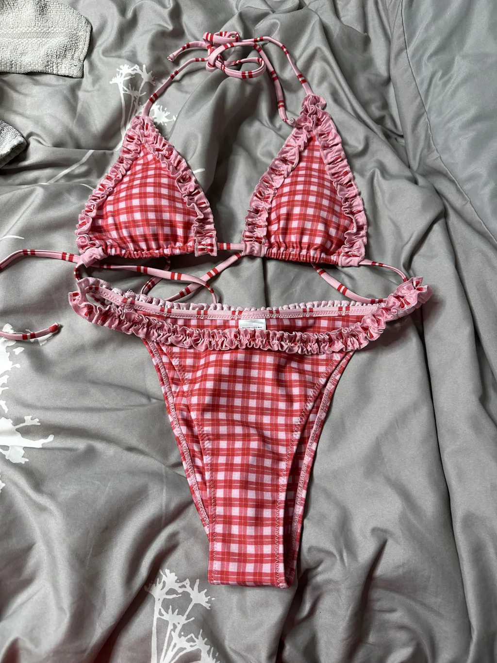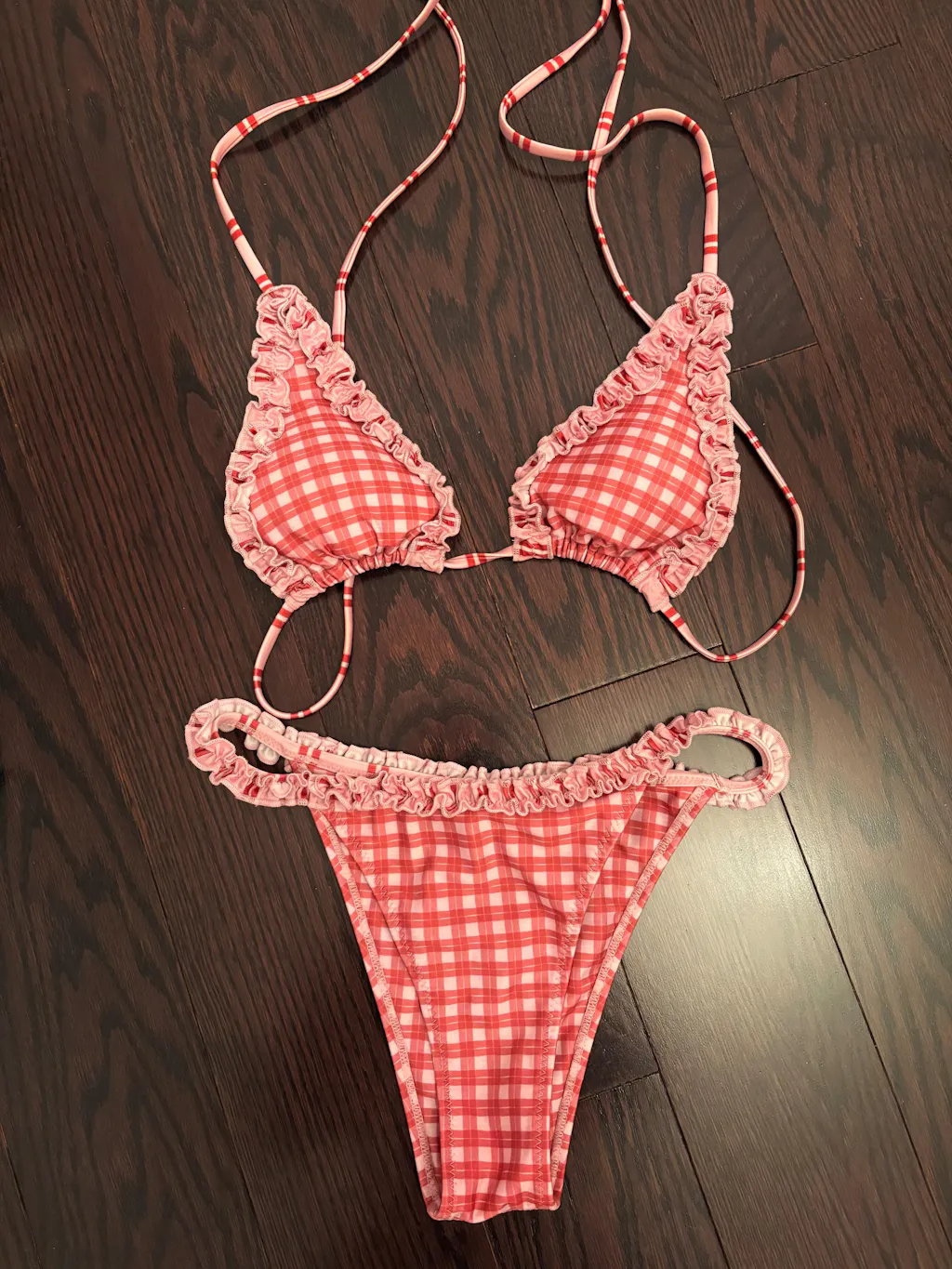 Pucker Up, princesses! This bikini bottom is sweet, flirty, and ready to steal your heart. With a red and pink gingham checkered print and a ruffle-scrunch waistband that's meant to sit high on the hip, this bottom will make you fall in love. The medium-cheeky coverage keeps things fun while flattering your curves just right. Whether you're poolside or beach-bound, this is the kind of fit that feels like true love’s kiss.