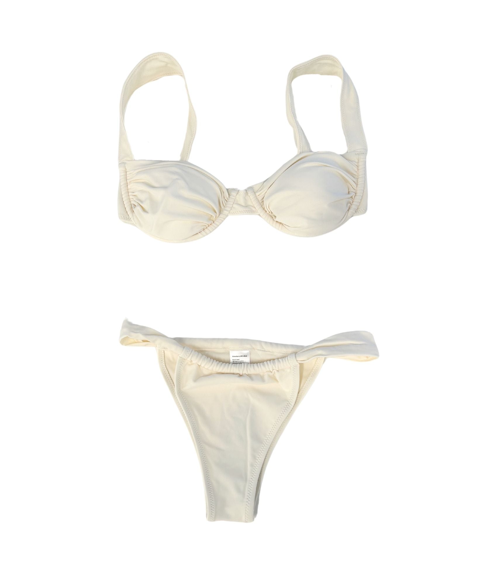 Experience the epitome of leisure with our Dolce far Niente bikini bottoms – an embodiment of the sweetness of doing nothing. In a serene cream hue, these bottoms offer both comfort and style. With thick side straps meant for a high-waisted fit, they create a flattering silhouette. True to size and a customer favorite, these bottoms strike the perfect balance between cheeky and medium coverage, while the zig-zag stitching adds a touch of detail. The thick waistband ensures comfort without digging into your skin, allowing you to savor every moment in carefree elegance.