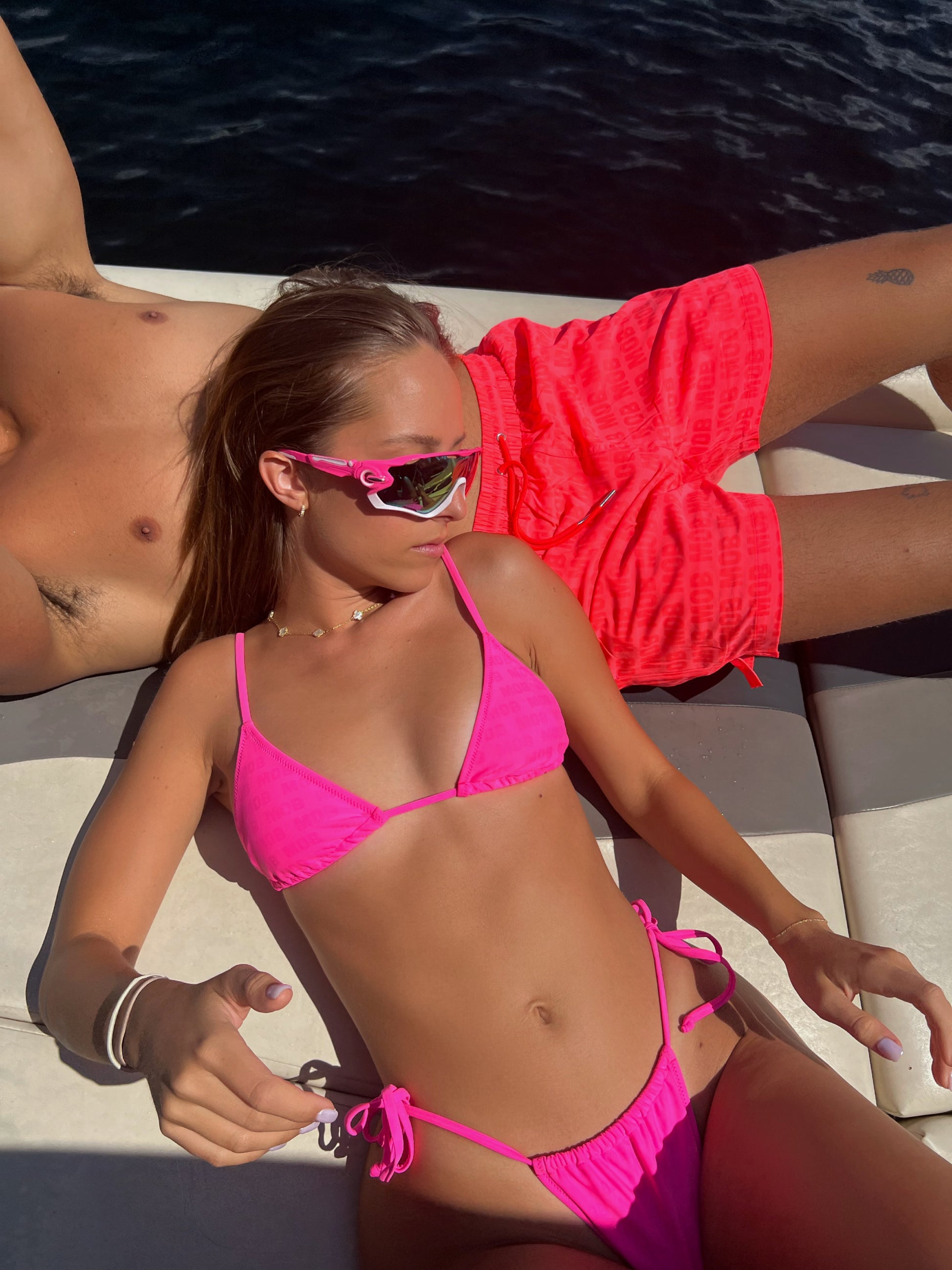 Meet the Wanda bottom – where style takes a delightful turn and magic meets your beach look. Vibrant in neon pink, these bottoms boast string adjustable ties that let you customize the fit to your liking, like your very own beachside incantation. With medium bum coverage that's as balanced as a magician's act, they're designed to complement your comfort and confidence. Just like their top counterpart, the hidden "Mob" print appears like a splash of beachside magic when wet, adding an extra layer of enchantment to your beach moments.
