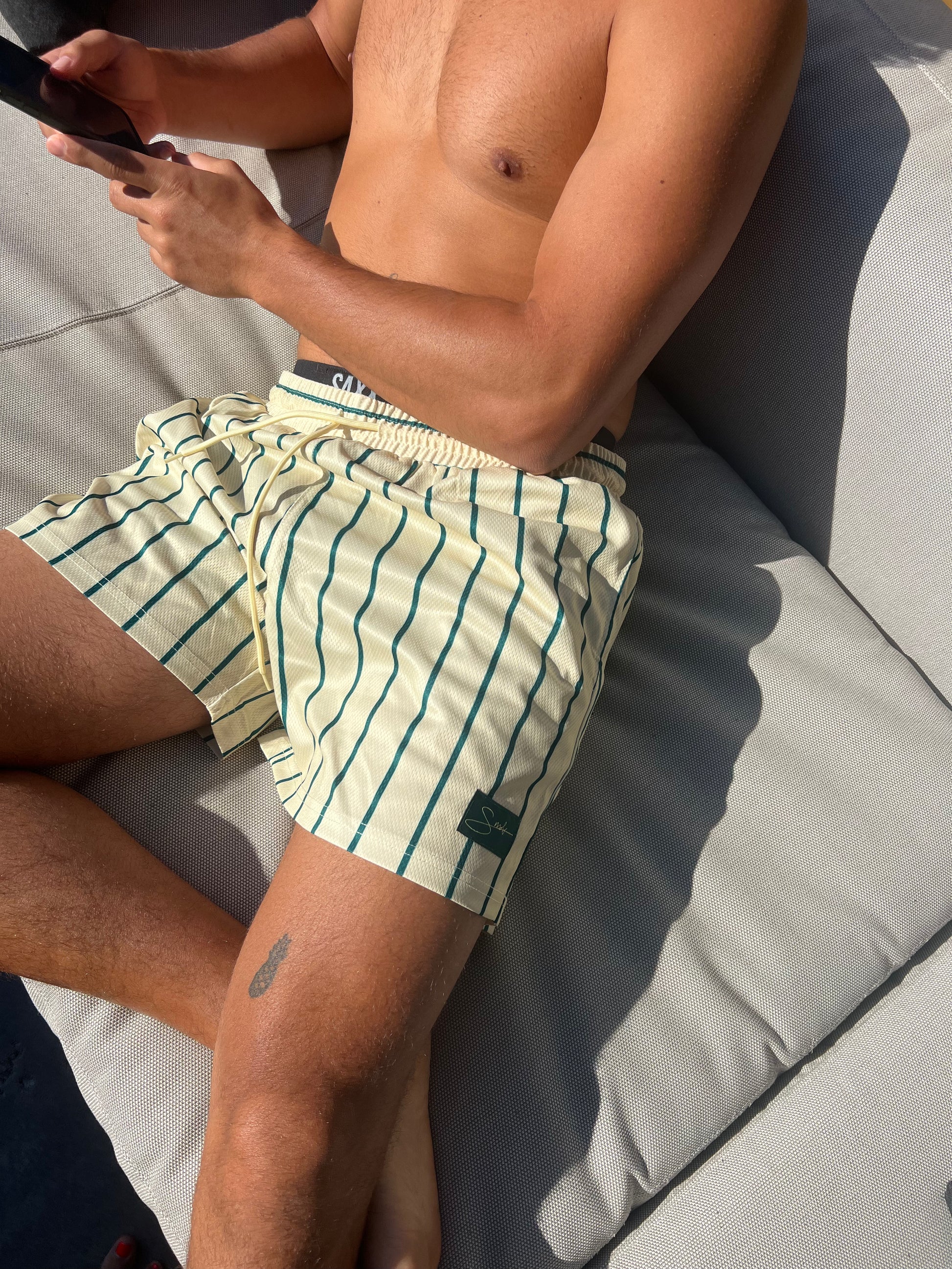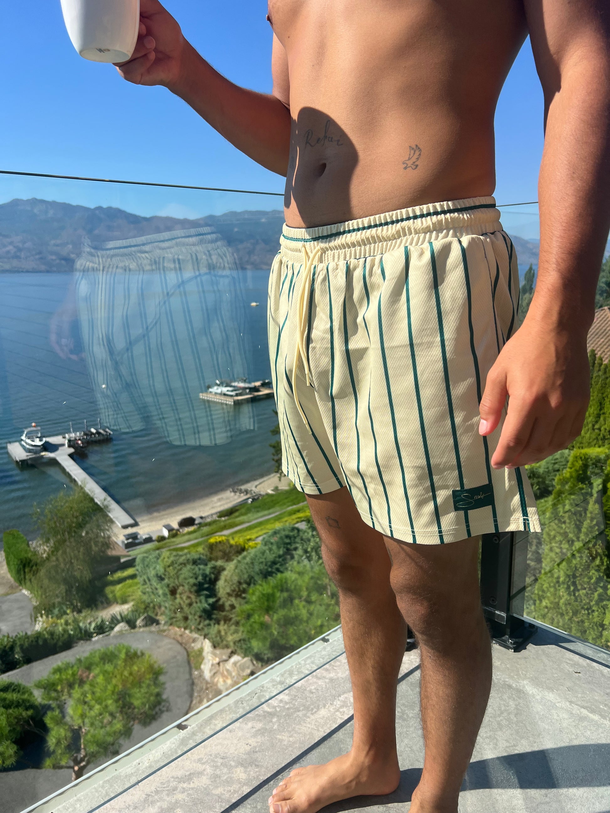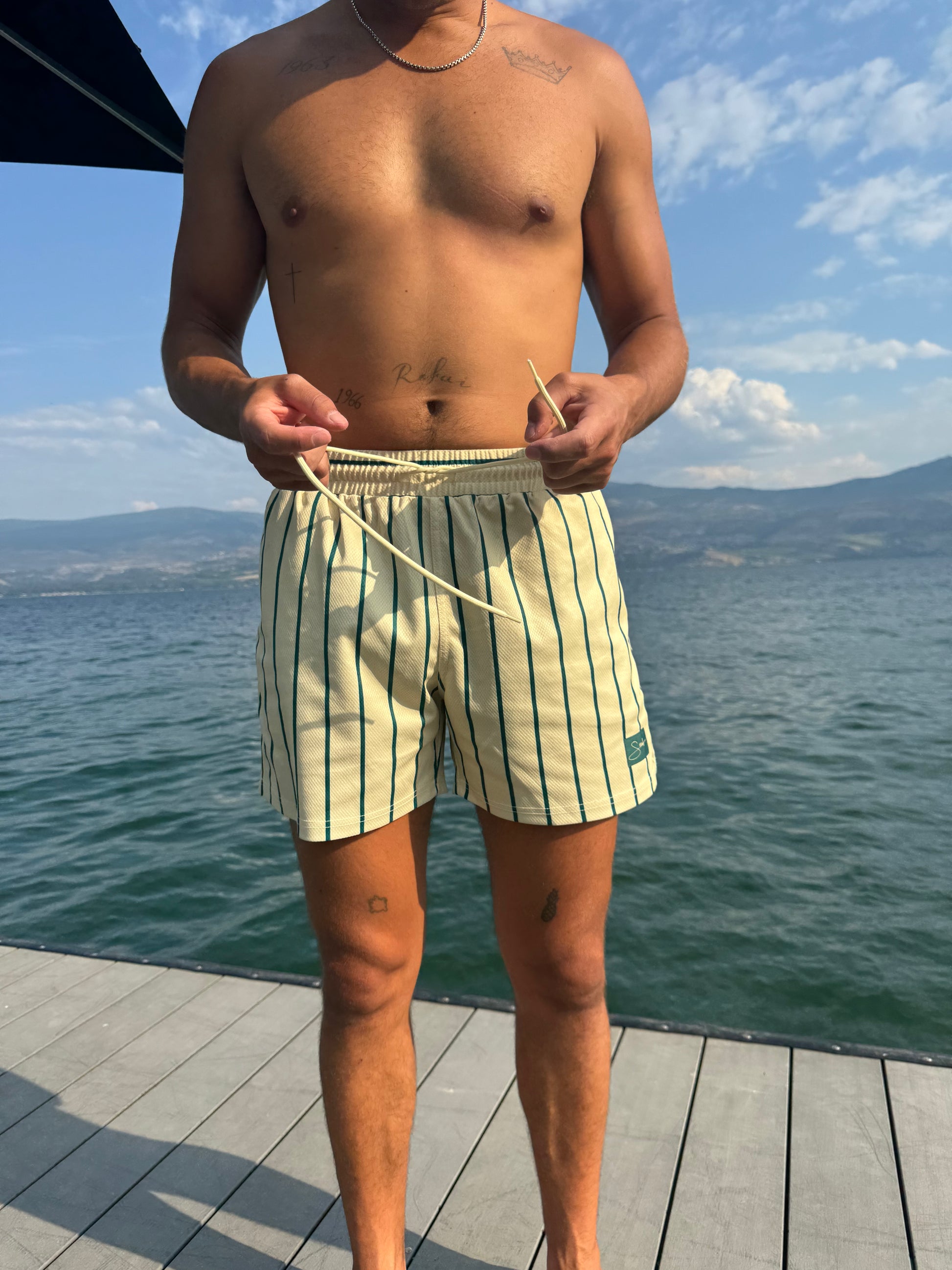 Elevate your summer loungewear with our Yellow Jersey Short, designed for optimal comfort and style. Crafted from lightweight jersey material featuring a sporty pin-stripe print, these shorts are perfect for leisurely days and relaxed summer outings. With a focus on functionality, these shorts come equipped with two side pockets, each featuring a secret zipper compartment for secure storage, and no lining. The tie string waist ensures a customizable fit, while the 5.5 inch inseam strikes the perfect balance between casual and refined. Embrace the essence of effortless style with these lounge shorts, offering comfort without compromising on your impeccable sense of fashion.